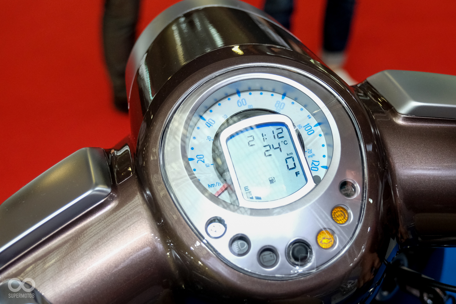 除了優雅的Django車系外,現場也展出殺氣騰騰的Speedfight車系,從車頭看去,有如舊款Ducati 1098的雙魚眼頭燈展現出濃厚的運動風格,搭配前後13輪圈與後擾流翼,與國產車款所強調的運動外型方向截然不同,Speedfight更顯銳利、大膽,雖然目前車款尚未送測,但是125c.c.引擎在歐洲有著11hp的輸出,估計未來的動力的動力表現將不會與國產車款相差太遠。