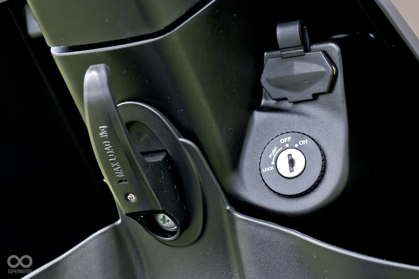 雖然身為電動代步車,但是摩托車該有的功能在COZY上樣樣不缺,例如便利的前掛鉤與前置物空間,以及位於掛勾旁的USB充電接口,,對於台灣地區使用可說是大大加分。