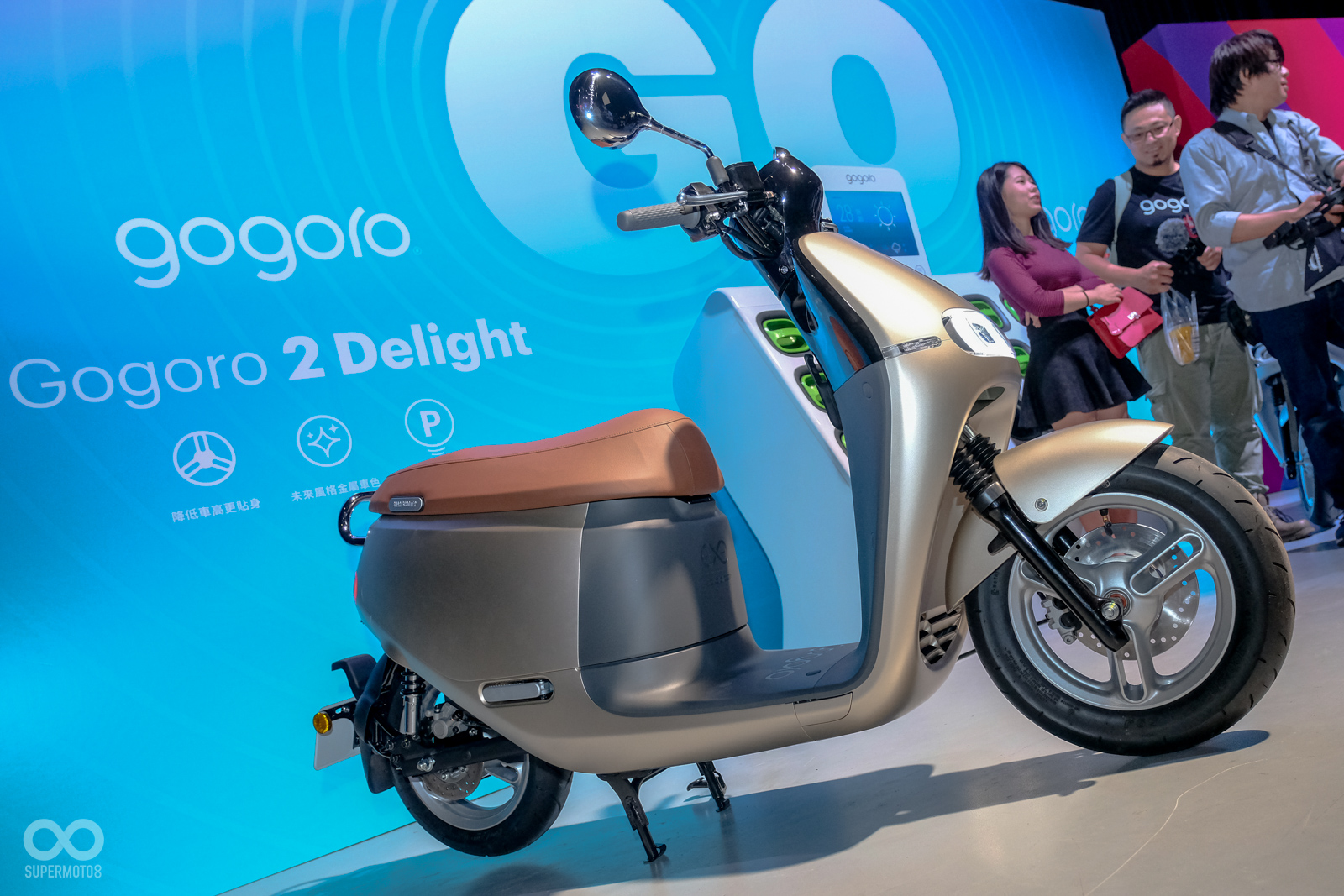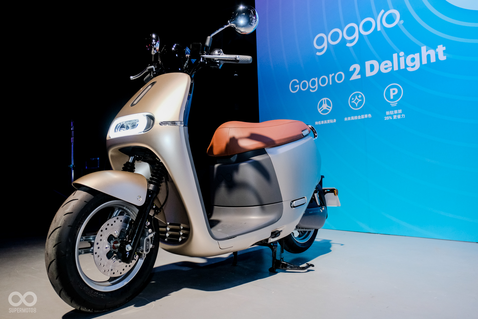 Gogoro Delight也帶來了兩款的全新車色:水銀藍、香檳金。新車色的色彩設計,是由義大利的色彩設計大師Beatrice Santiccioli操刀,Beatrice先前曾為蘋果等知名品牌,進行色彩設計與指導。