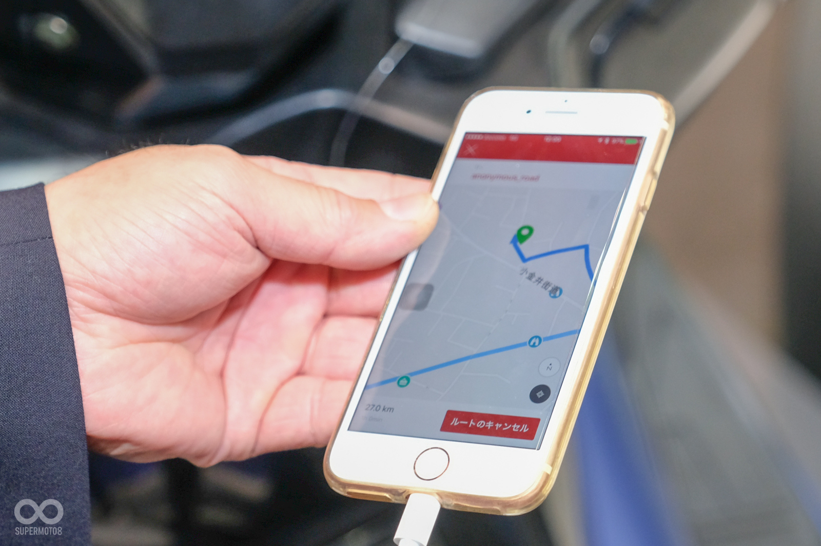 透過手機操作,騎士可在出門前輸入目的地位置,而無須在車上輸入系統;啟動機車後,手機上的目的地位置,將會被自動傳輸至機車儀表上。因此,所有行程在啟程之前即可全部設置完成。