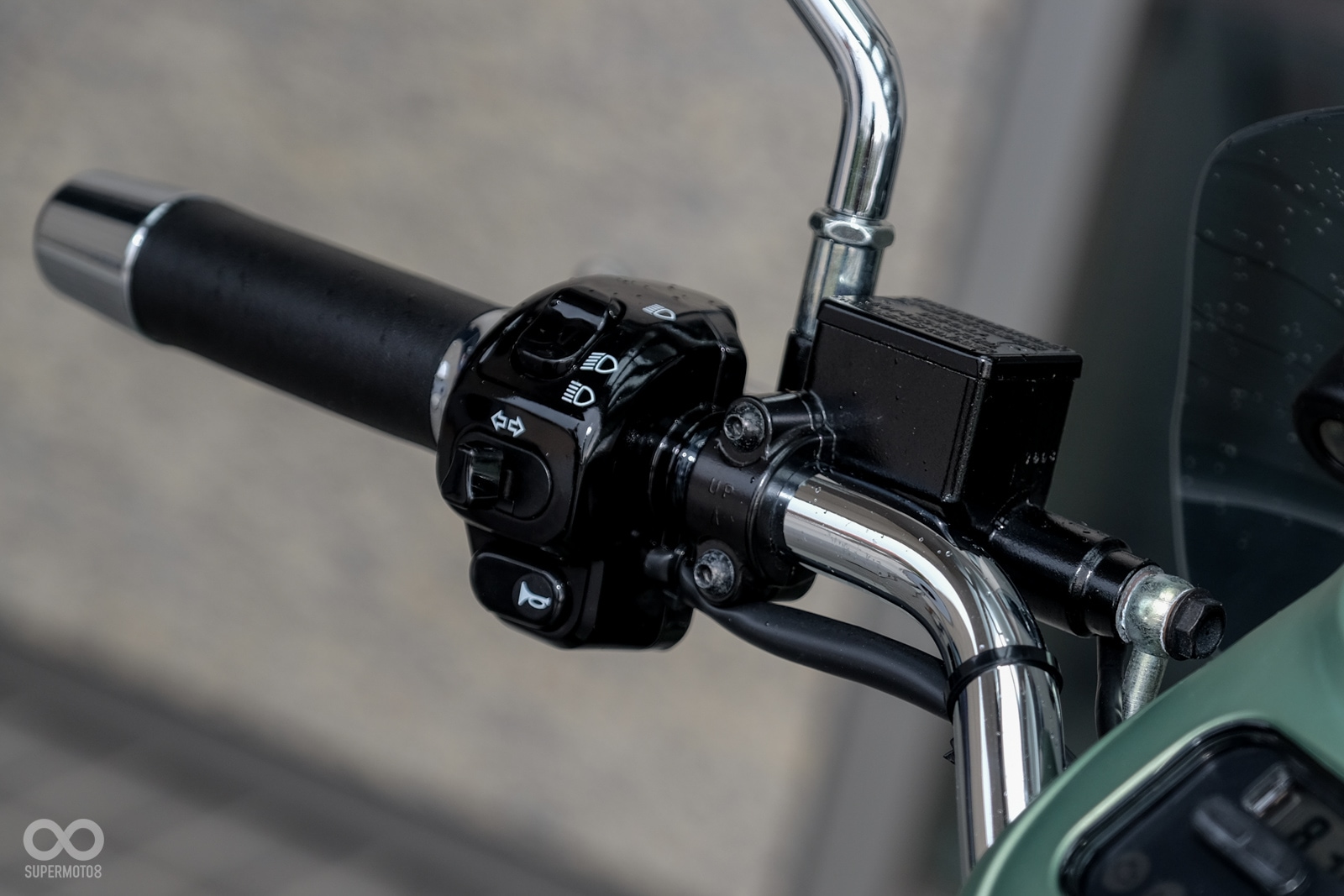 Vespa GTV 300 Sei Giorni另一亮點則是位在手把,裸露的手把圓管配上復古味十足的白色指針儀表板為車輛增添了幾分優雅,手把的左、右開關皆與大多數車款相同,消費者可以輕鬆上手。