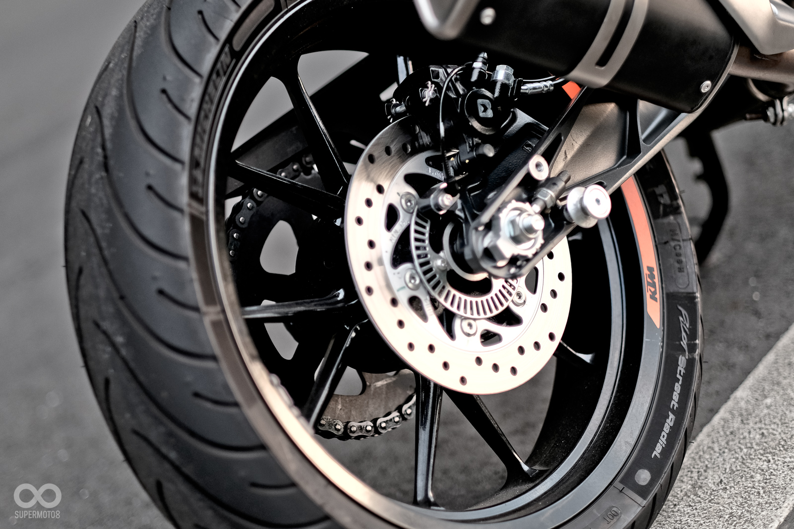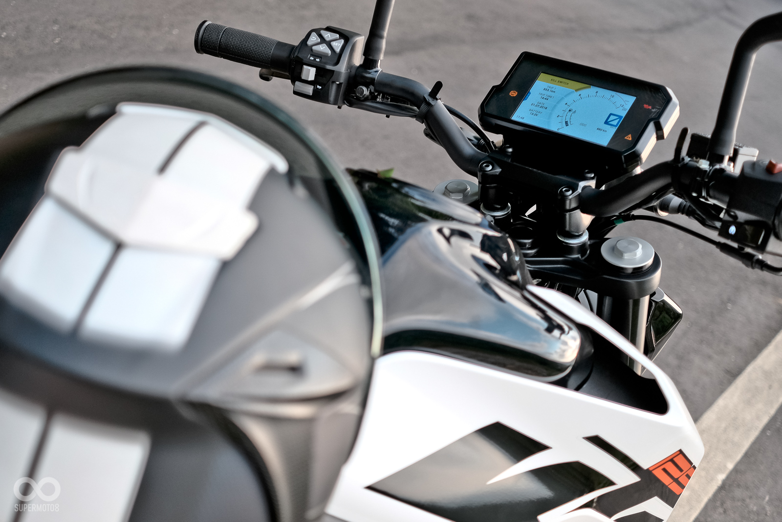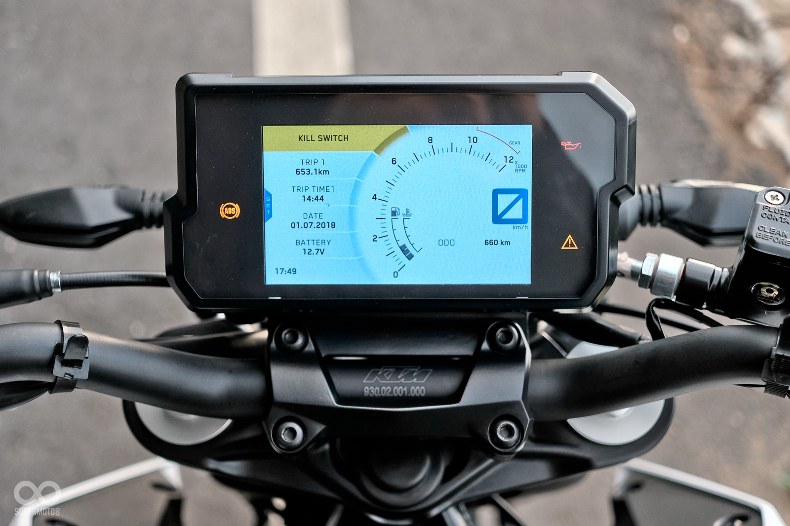 雖然這是一輛單缸124.7c.c.檔車,但是KTM可沒有就此忽略各項細節,前後輪標配Bosch的ABS系統可以讓騎士在緊急時刻時更加安心,左右手把開關雖然未有雙黃燈按鈕,但是在夜間會發亮的按鍵可是讓車輛質感大幅提升,而精美的TFT儀表則是由左手的功能鍵控制。