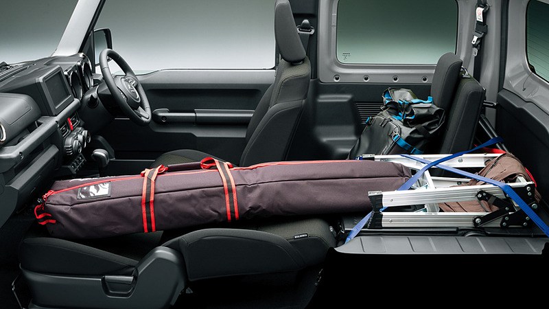 除了越野能力之外,其實內裝設計也是這次的重大提升之一,雖然比起現代的車款來說,這樣的表現還是稍嫌弱了一點,但是對於Jimny來說可以說是重大的進步,儀表台中央擁有獨立車載系統螢幕,儀表除了雙圓錶之外,中間還有一個小型的液晶螢幕,當然內裝的配置會因為規格的不同而有所變化,但是基本上都是採用硬塑料為主要的材質搭配,原因就是訴求越野元素的Jimny,搭配這樣的內裝更便於清洗,所以你不用想Jimny的內裝會有多高級,他就是一輛粗獷的車啊!