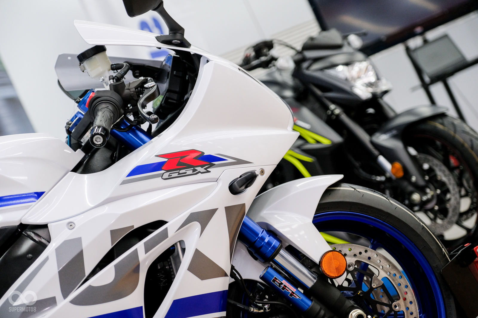 GSX-R1000R以帥氣的白色塗裝為主,全車皆以雪白的塗裝輔以SUZUKI招牌的藍色字樣與深灰色字體呈現,但是在溫順的外表下可以保有台灣同級車最大的188ps最大馬力,另外也同時具有輕量化鋁合金車架、以及SHOWA BFF頂級避震系統。來自MotoGP賽道科技的起步彈射系統、彎道ABS、高達十段可調的循跡系統以及滑動離合器與進退檔快排系統等,所有GSX-R1000R擁有的頂級配備一樣不缺。