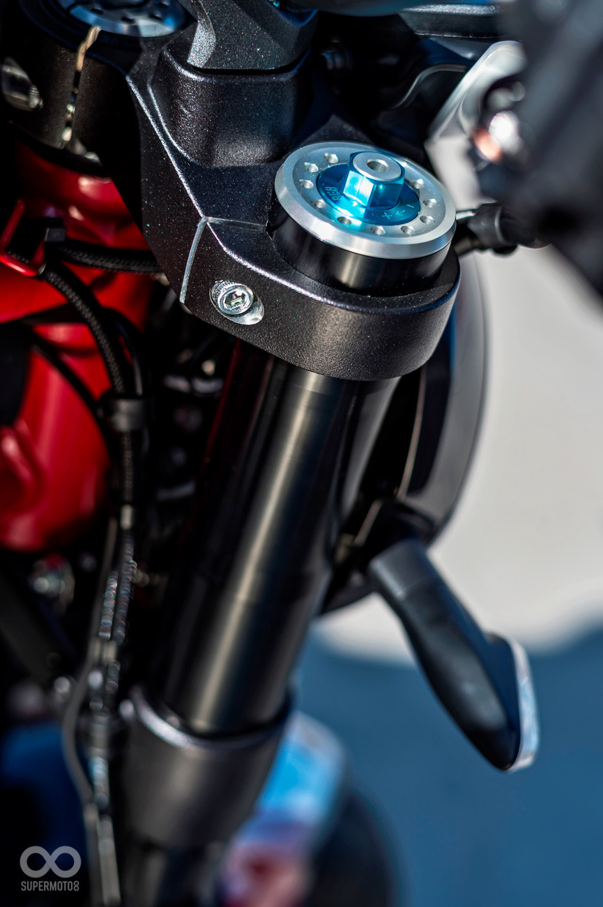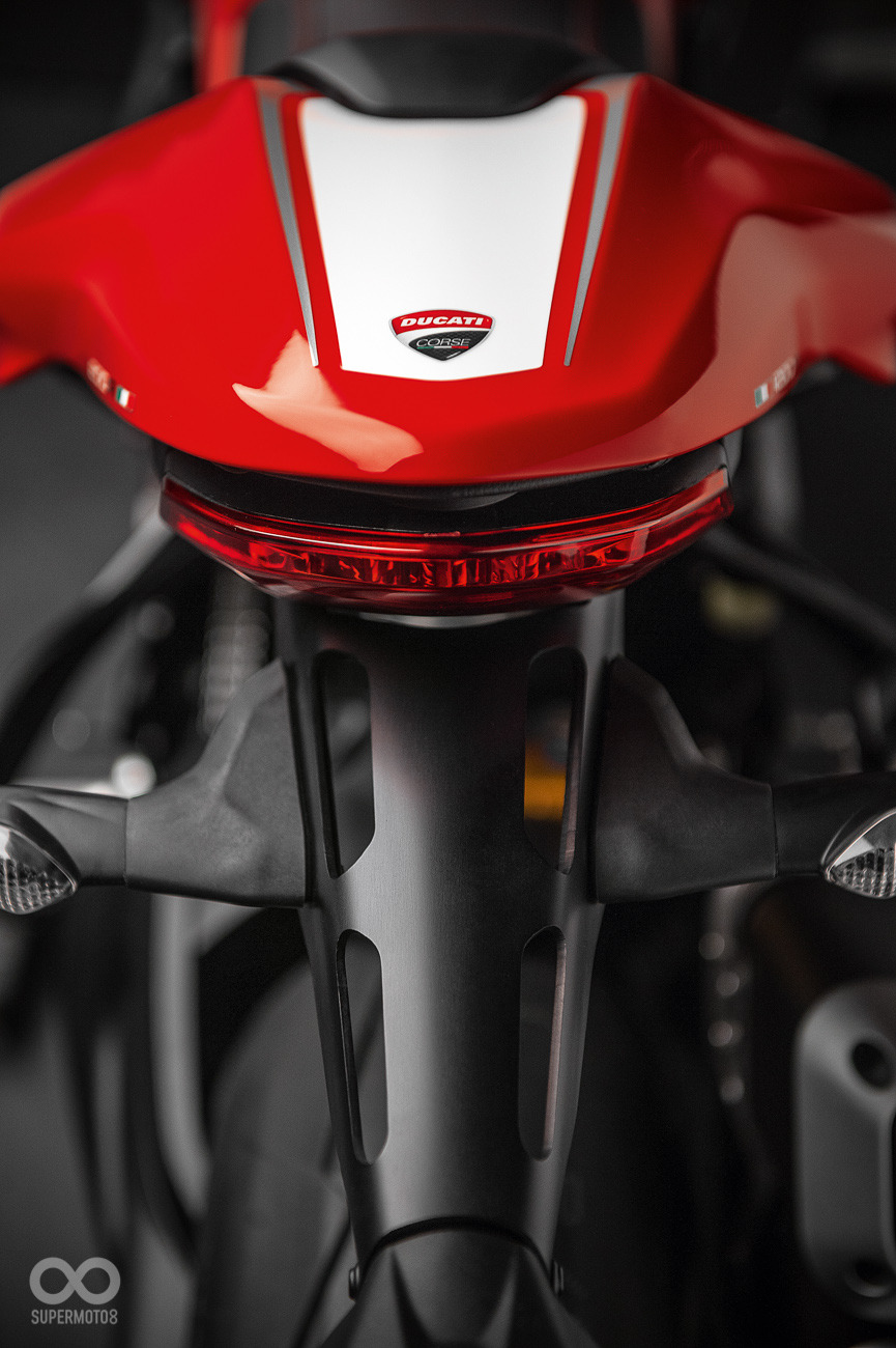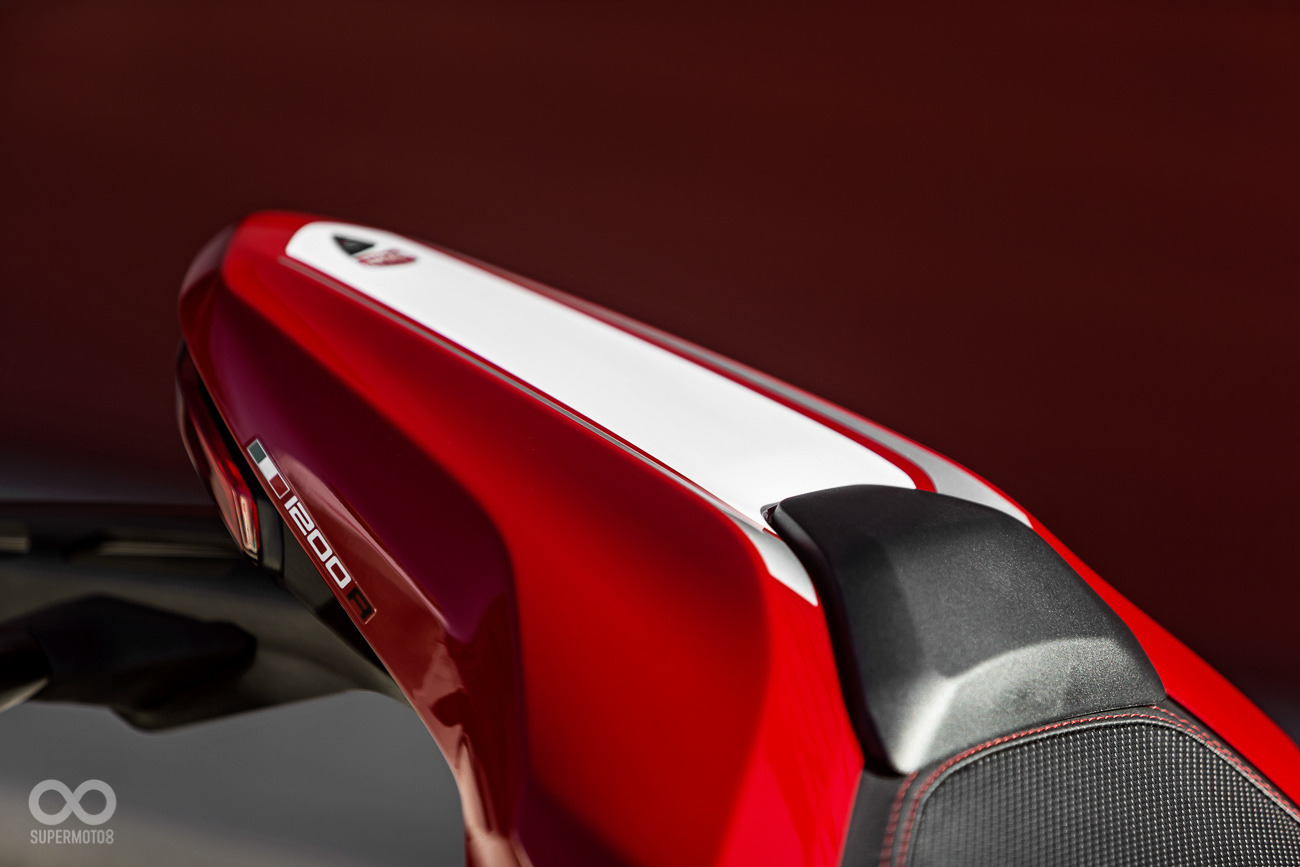 最受矚目的動力心臟方面,Monster 1200 R搭載Testastretta DVT引擎,在其1198.4c.c.的排氣量中,受惠於全新橢圓形氣門設計與加大進排氣岐管後,榨出了高達160hp/9250rpm的最大馬力,最大扭力也有131.4N-m/7750rpm的水準。不僅動力較Monster 1200 S全面提升,也因全新輪圈樣式、排氣管設計與傳統車牌架造型,讓車身重量減輕2kg之多,來到180kg門檻。