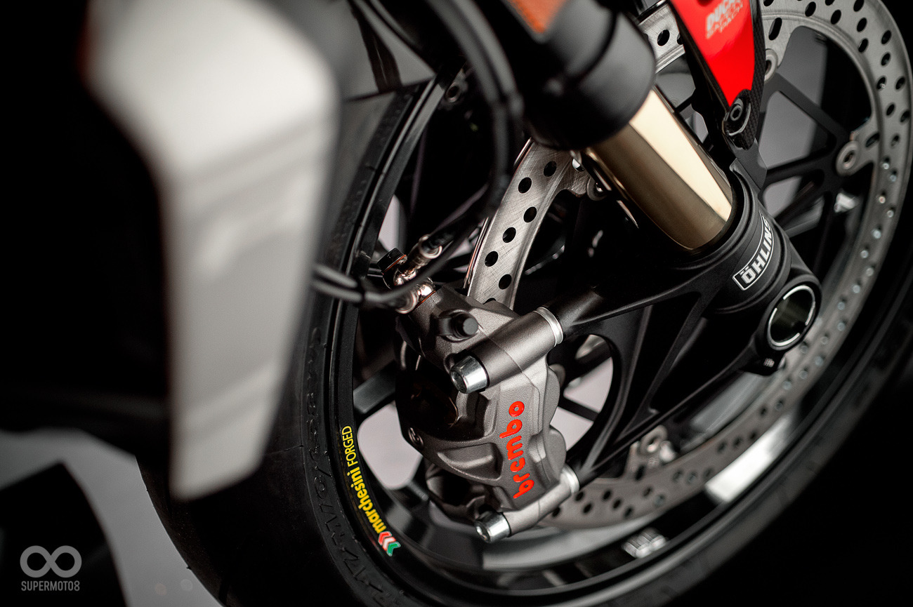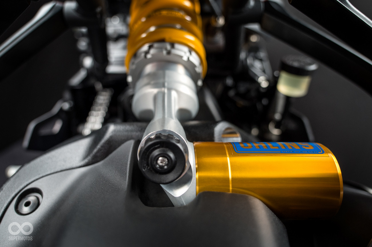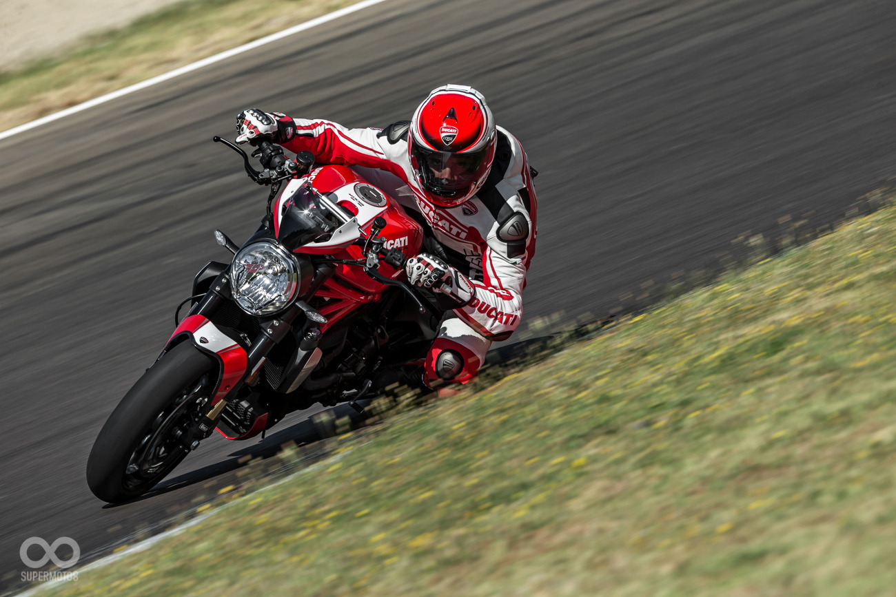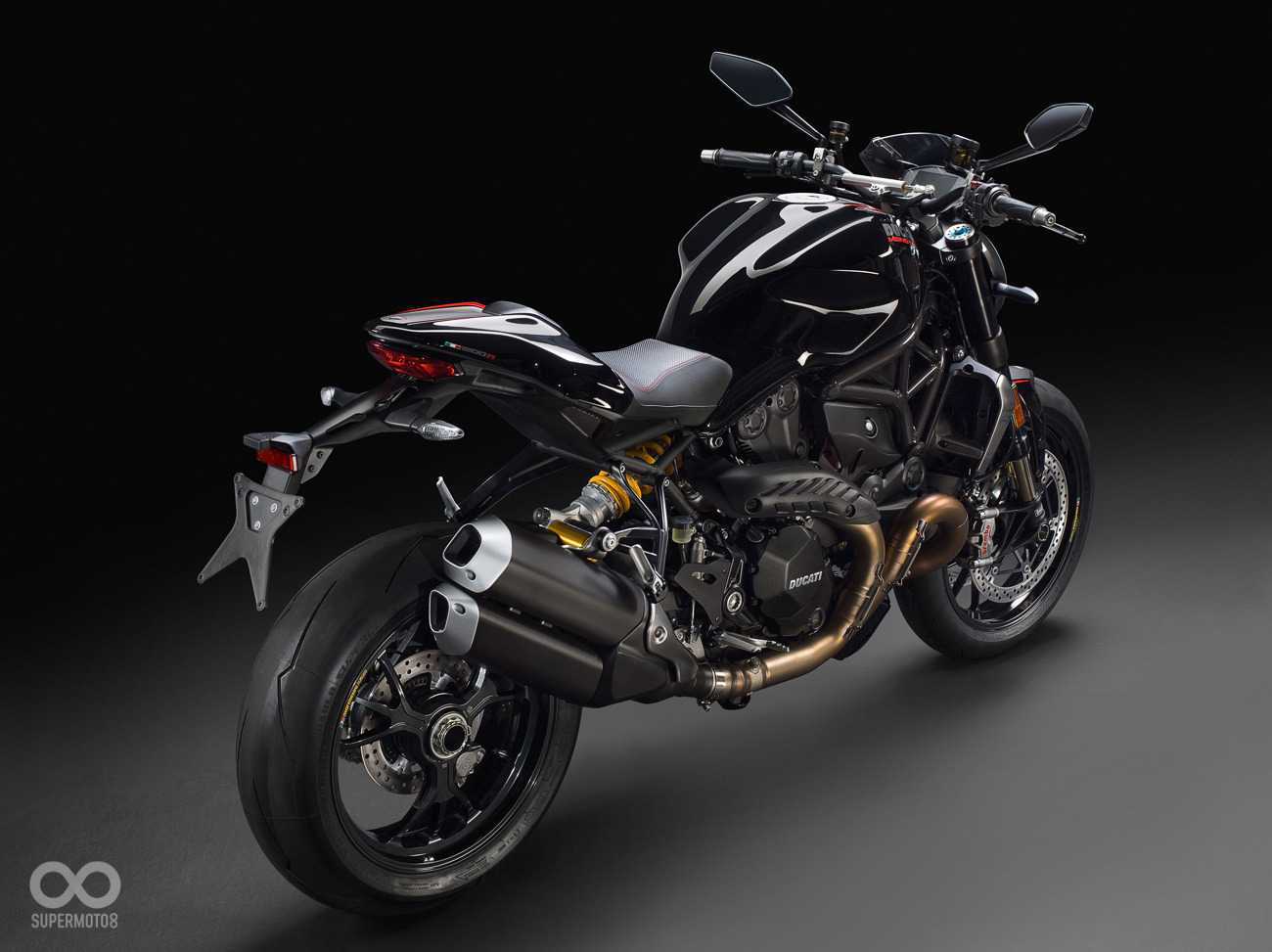對應更強悍的性能,Monster 1200 R騎乘姿勢、懸吊與煞車系統也全面強化。因副車架造型的調整,後座提高2cm,搭配全新前後腳踏板設計,騎乘姿勢將更具戰鬥性。導入全新Ohlins前後避震器,採用氮化鈦塗層鍍色,黑金配色為車身外觀造型帶來全新亮點。除了煞車系統導入Brembo M50四活塞輻射卡鉗,對應前330mm、後245mm碟盤直徑,配上Pirelli目前運動胎旗艦Diablo Supercorsa,前後輪胎尺碼分別為120/70 ZR17與200/55 ZR17。同時,Monster 1200 R也導入了Ducati安全套件,包含循跡系統、提供Sport/Touring/Urban三種等級的騎乘模式等。