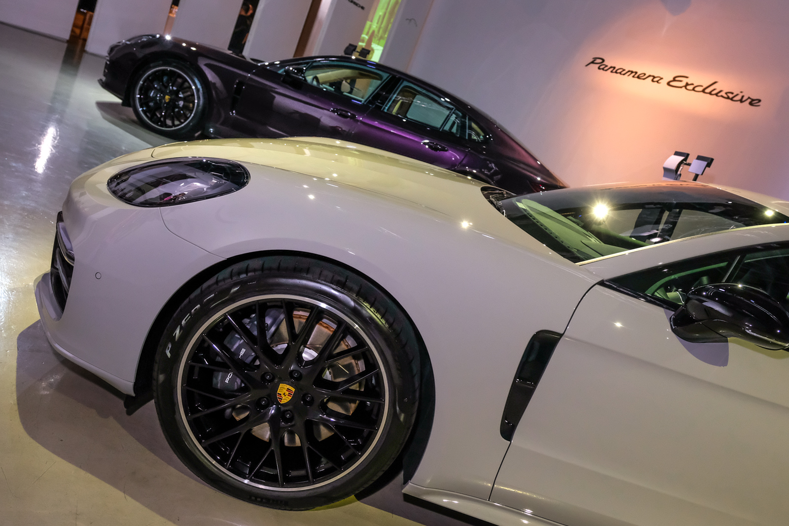 今日(9/12)台灣保時捷也特別在內湖的學學文創,舉辦了Porsche Panamera Exclusive賞車會,本次導入的Porsche Panamera Exclusive以限量的方式引進台灣,總共僅有六部車限量抵台,在車色上Porsche Panamera Exclusive提供了兩種獨特的顏色,分別為蠟灰色和金屬水晶紫,搭配上21寸的Panamera SportDesing高亮澤黑色烤漆鋁圈以及造型外觀套件等客製化的內外觀配件,來營造出強烈的個性化座駕。