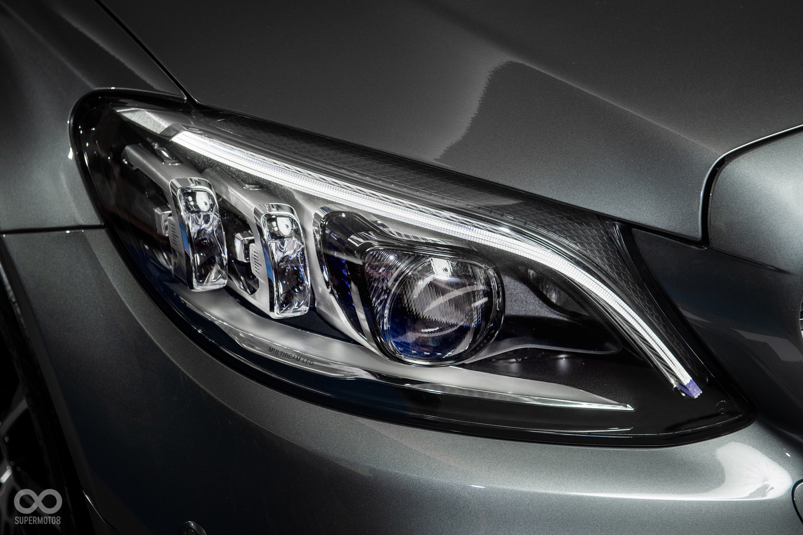 The new C-Class 針對 205 世代已廣受車主喜愛的外觀細節重新雕琢,最顯眼的莫過於是導入全新設計的 LED 頭燈科技,全車系標配的標準型 LED 頭燈採用上下各四組 LED 反射模組,上方負責近光照明,下方則為遠光照明。更有多光束智慧型 LED 頭燈提供選配,升級至 84 顆電子控制獨立 LED 光源,更具備ULTRA Range 超長距遠光燈功能,最大照射距離可達 650 公尺,提供最佳照明能力,可在自動避免造成對向來車炫光影響下有效提升夜間駕馭安全性。
