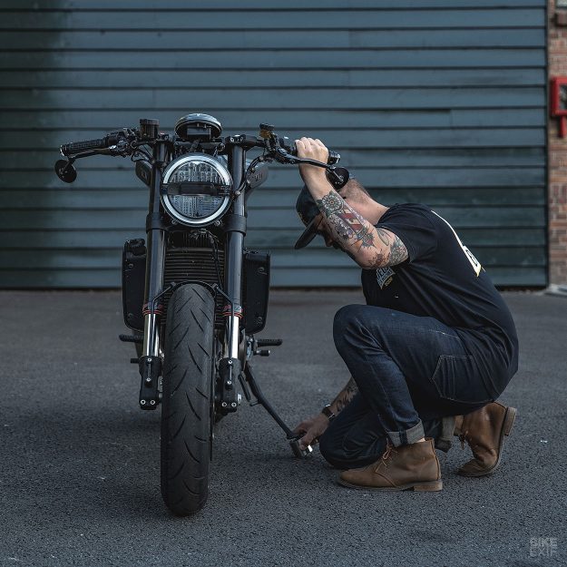 最後還是牽起了HUSQVARNA VITPILEN的手,這不是一個很普遍的選擇。眼光獨到?我想應該是情有獨鍾。在先天體質便趨臻完美之下,輕巧、有力並且靈活的車體,要論改裝,HUSQVARNA VITPILEN的確是上乘之選。並且在這相對冷門的選擇中,就又帶了一點獨樹一格的格調與品味。「在歐洲看到HUSQVARNA VITPILEN的概念車,我很興奮能夠親自駕馭它」Arjan van den Boom,這位老闆眉開眼笑的說到,「但我認為VITPILEN應該可以在我們手上更好,即使目前看來他已經足夠完美了。但我們的倫敦客戶並不滿足於現況。」