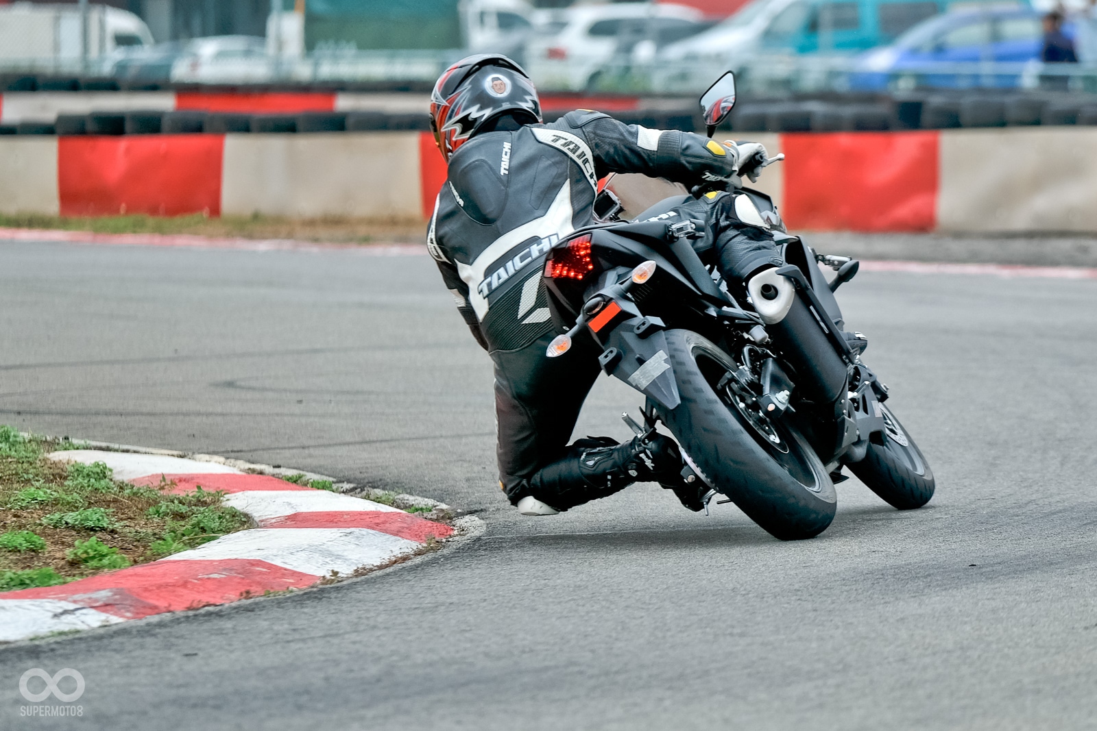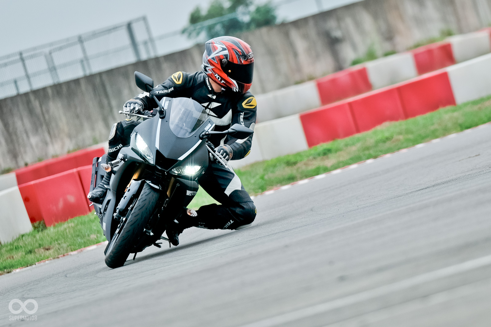 多虧新款油箱罩帶來的良好挾持感,用力扣下前煞車進入麗寶卡丁賽道刁鑽的低速彎,大腿可以輕鬆的固定身體,避免給手部施予過多壓力,全新的騎士三角與50:50的車輛配重提供良好的靈活性,可以輕鬆將車輛丟入彎道,煞車性能則是與前代車款相同並無太大差異。