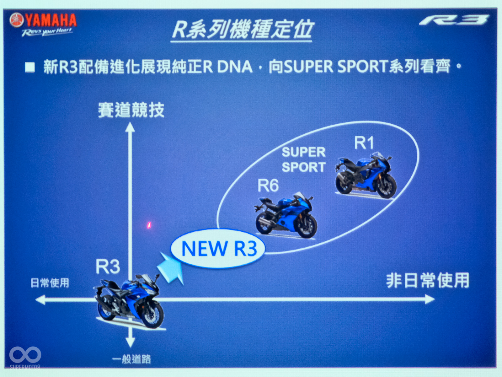 本次改款,YAMAHA依舊將車種定位為日常使用情況為主,且以20-29歲首購族群為主要目標,透過全新設計的車體外型承襲R系列一貫的競技風格,相較於上一代車款也再次增強了運動性能,除了火速引進販售外,原廠也一並於第一時間導入多款改裝品供車主選擇。
