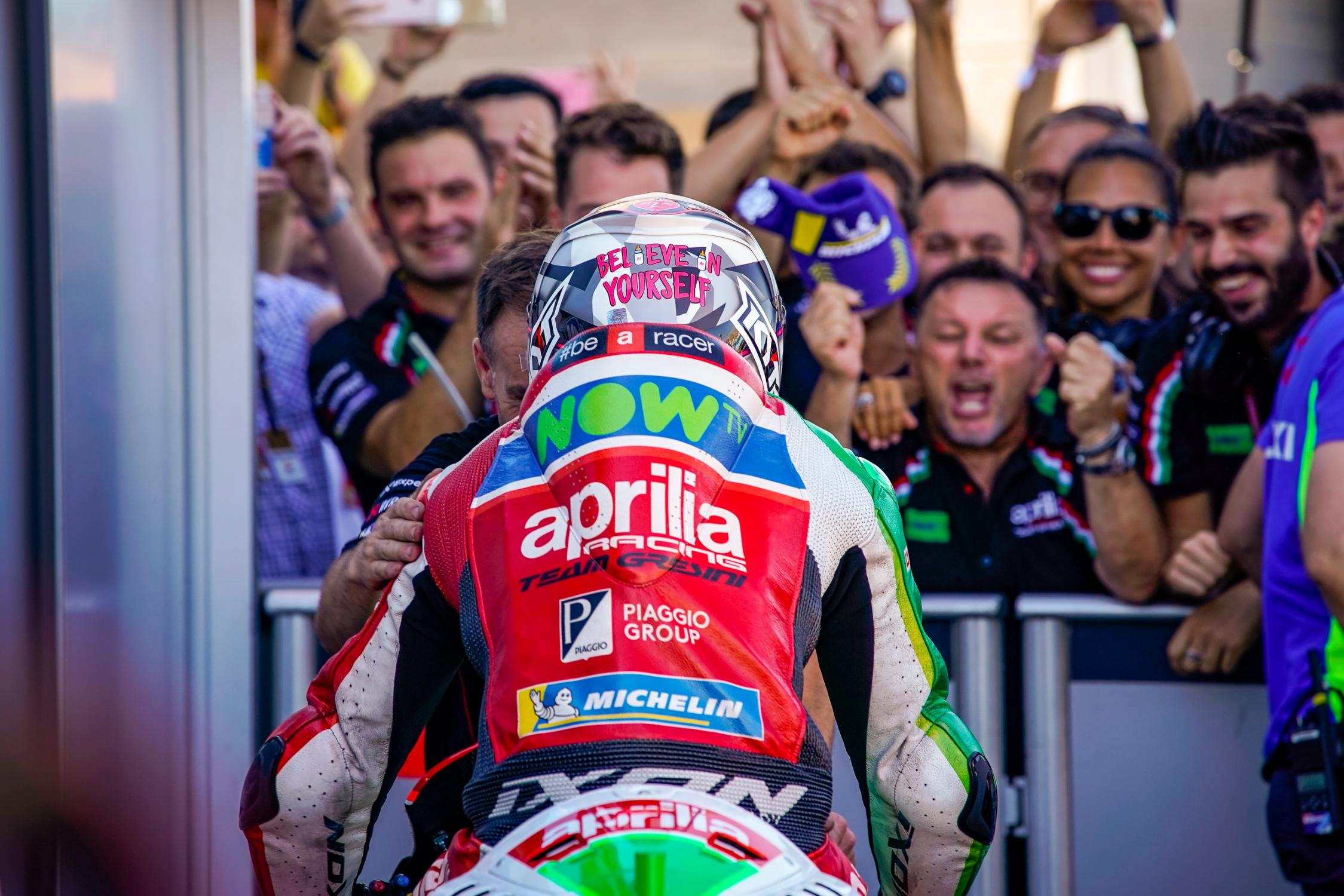 「今年比賽我在每一條賽道上都遇到許多困難,在缺乏抓地力跟制動控制上的問題,在這條賽道上,RS-GP看起來比以往來的更低一些,即便車高並沒有改變,但這條賽道就是會讓你有這種錯覺。整體穩定性感覺上要高許多,但感覺是不差的。」Espargaro說。「我在熱身賽時比起排位所作出的單圈更快,在正賽時的最快圈速比杆位成績只慢上半秒,且我在正賽的最快圈速要比起排位來快上一秒,很明顯的狀況要好上許多,我的感覺也好多了。但不幸的是在最後的三到四圈中,後輪磨耗的太多,我無法繼續推進爭搶第八名的位置,但無論如何第九名完賽以及車況的優秀狀態還是讓我非常開心。」