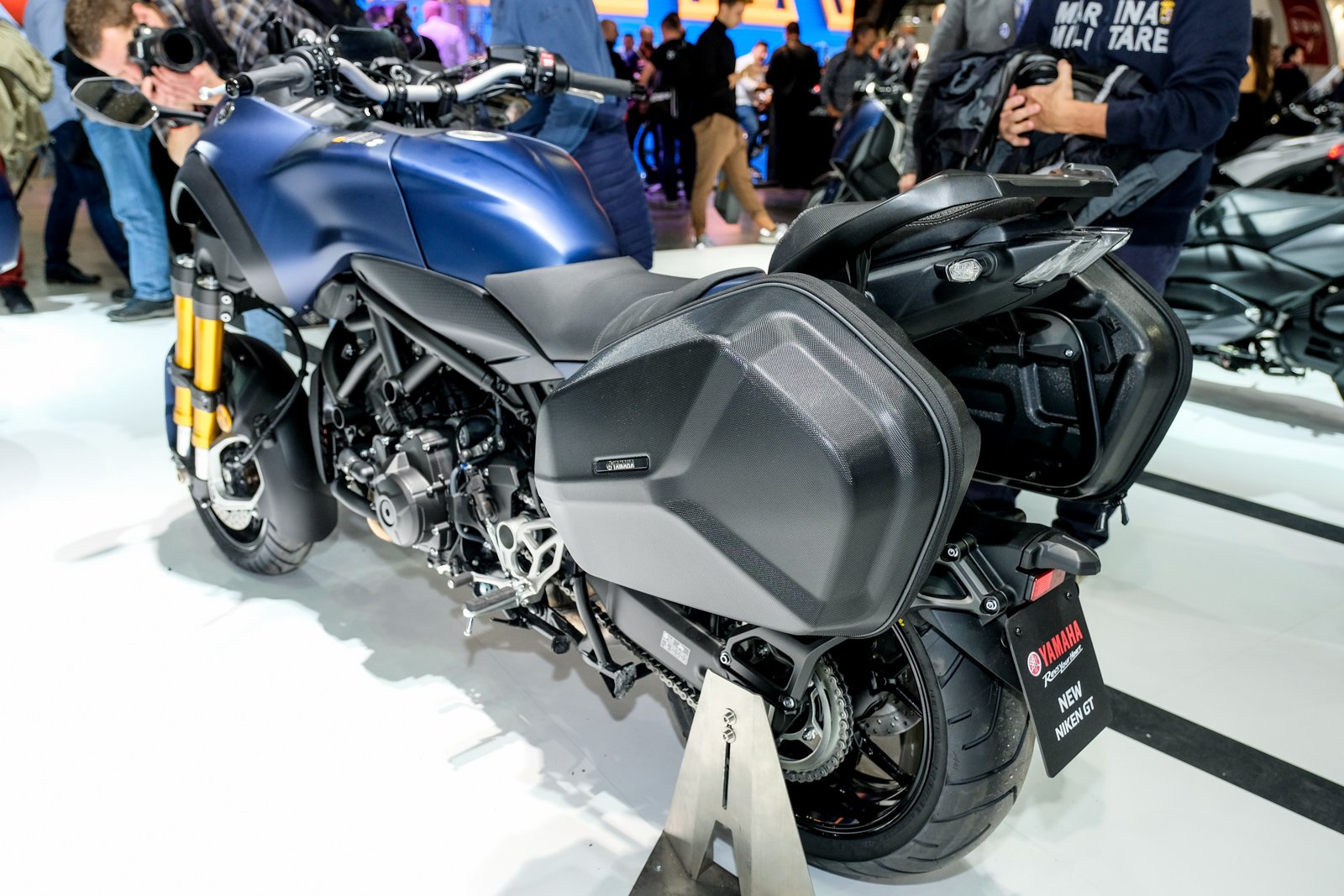 就如同YAMAHA近年來的策略相同,NIKEN GT基本架構基本上與一般版本車款並無太大差異,但可在NIKEN GT上頭看見大面積風鏡大幅提升騎乘舒適度,另外車尾配有雙25公升的塑料行李箱以及重新設計的後扶手,最後為了確保現代人的電力需求,12V充電座也隨伺在側,不管是單人騎乘或是雙載出遊,都可以享受不同於過往的機車乘坐感受。