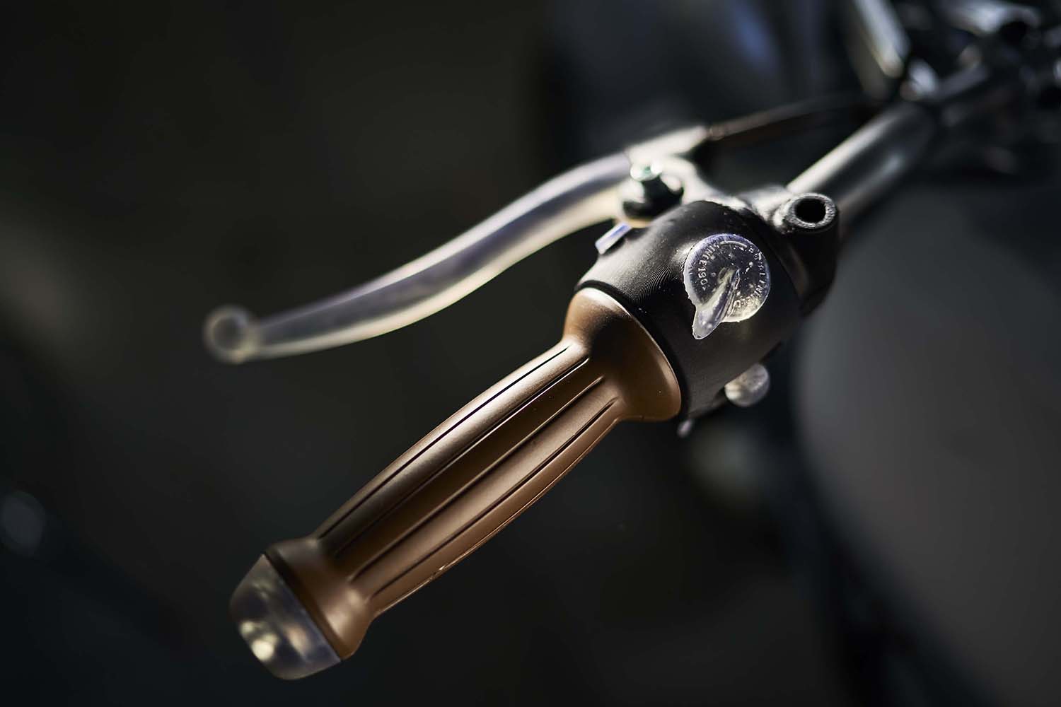不得不說,第一眼看到這台Royal Enfield KX真的是會馬上被他給吸引,復古的造型配上現代化的細節處理,讓這台KX概念車散發出一種獨特的魅力,前叉特別的造型,加上與大燈造型合而為一的金屬質感飾蓋,在正面營造出DieselPunk柴油龐克的風格。