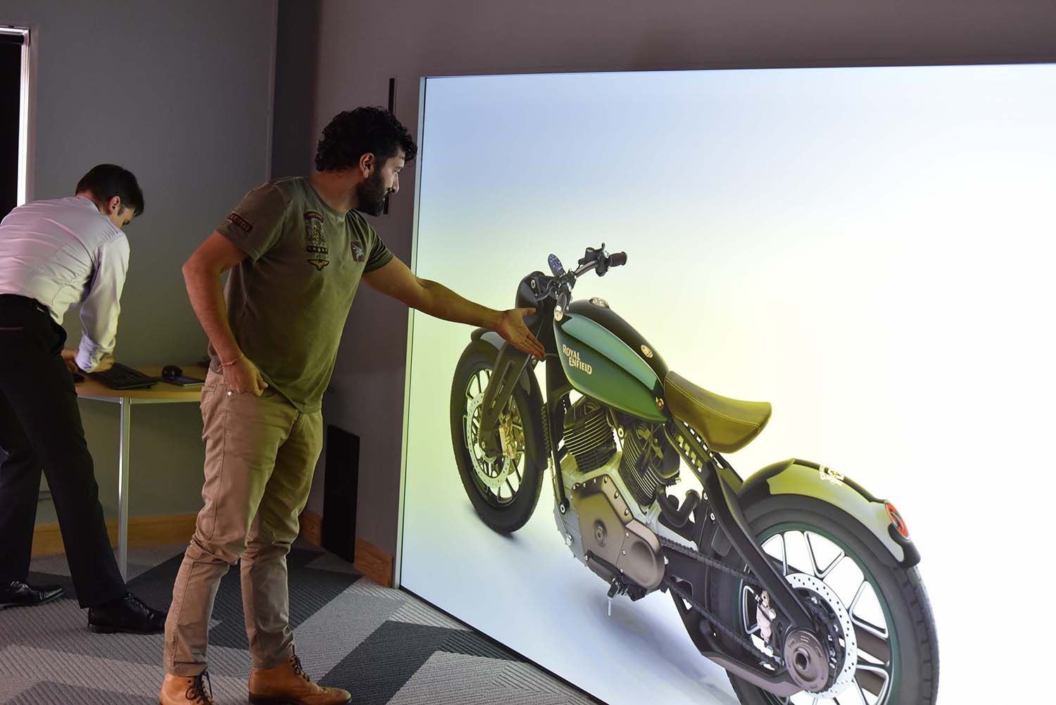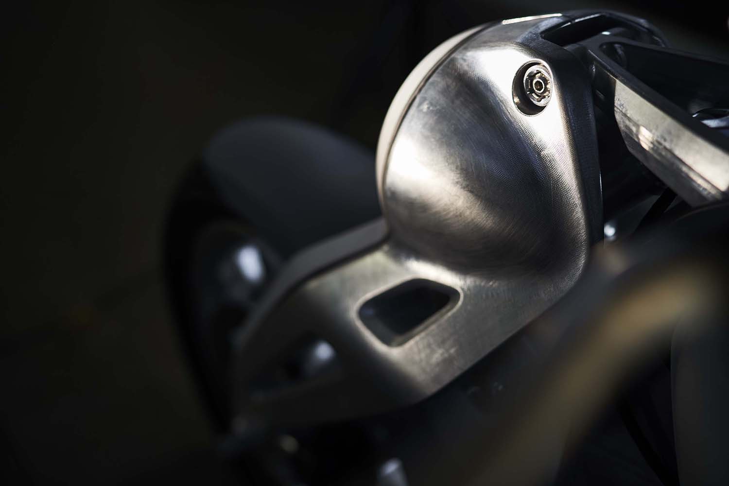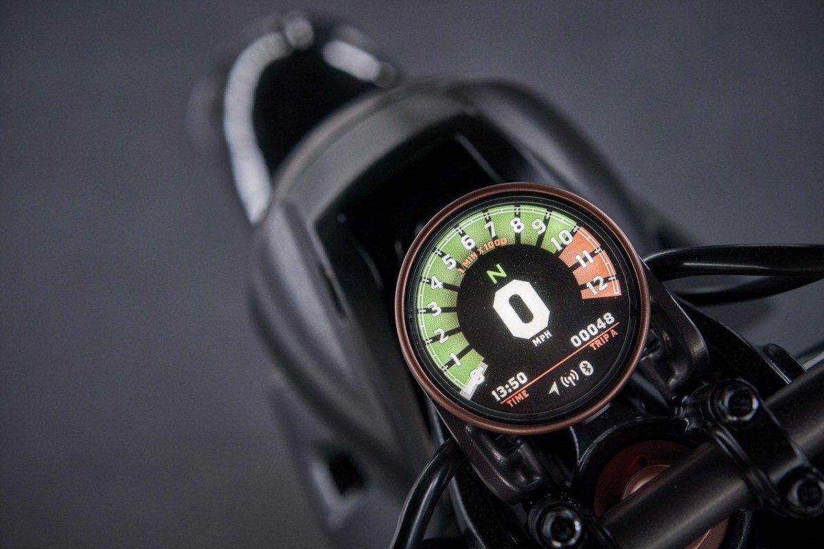 在輪胎上也能看到Royal Enfield替這輛KX概念車裝上了Brembo的卡鉗來替那具比例龐大的838cc 油冷V型雙缸引擎,雖然Royal Enfield並沒有透露更多相關的消息,不過從先前Royal Enfield提過的未來展望看來,這具引擎非常有可能會在近年出現在Royal Enfield的市售車款上。