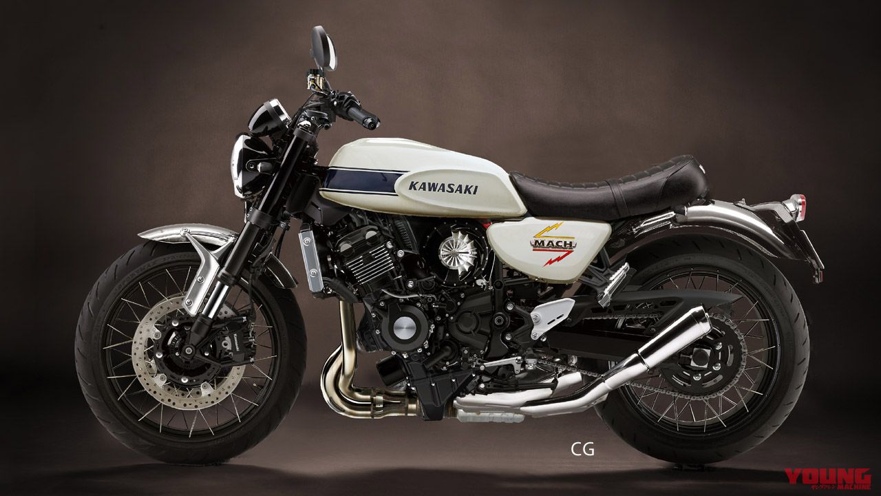 Kawasaki H1 Mach III在1969年於北美登場,這台採用了二行程三缸500cc的運動車款,這台車也正是Z650系列的前身,再加上當年就已經跑出最高時速200公里的超狂表現,讓Mach III成功取得當時的地表最速車款的美名,這次Young Machine除了做出Z650RS以及Z400RS的CG合成圖之外,更將這款川崎經典名駒重生在Z650RS的CG圖上,完美移植當年經典造型。