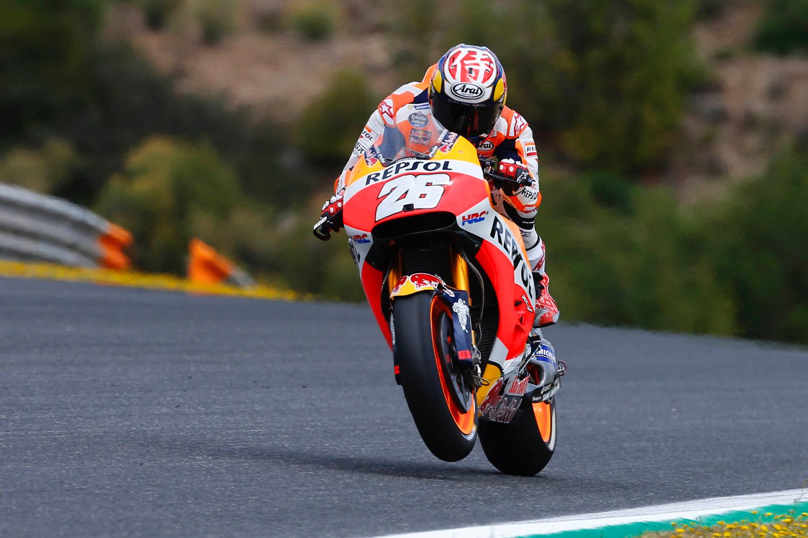 車主是Dani Pedrosa,在去年走下了那台僅重160公斤,並且擁有高達256匹馬力的RC213V,掛上了鮮豔的橘白色Repsol塗裝的連身皮衣,留下與一代傳奇Mick Doohan齊名的54勝榮耀紀錄與全球眾多不捨車迷的淚水,告別了MotoGP的舞台。