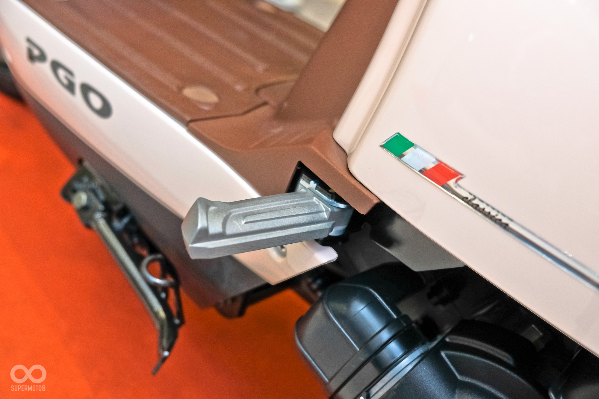 另外龍頭也一改過往的全包覆設計,改以裸把呈現,配上全新的指針液晶混合式儀表,如果你是駕駛者,以上的這兩項改變會有明顯的感受。另外PGO為了滿足大部分女性車主的需求,加入QC 2.0充電USB孔隨時提供你滿滿的電力,另外椅墊則是這次的改變重點之一,削切10mm更低扁帶來了親民的車高,且導入高密度泡綿確保足夠的支撐性。