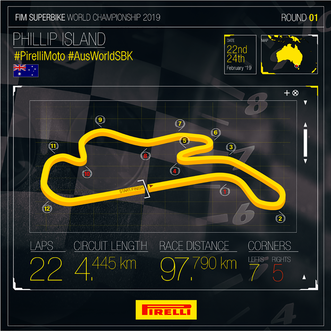 世界超級摩托車錦標賽(MOTUL FIM World Superbike Championship)2019賽季澳洲開幕賽,今年新加盟Ducati Aruba車隊的西班牙籍車手Álvaro Bautista(捌弟)以令各方驚豔的3場賽事全勝戰果(排位賽、Race1與Race2)讓菲利普島賽道被耀眼的紅色光芒包圍,Kawasaki車手 Jonathan Rea、Leon Haslam and,與Yamaha車手 Marco Melandri則在本站2場正賽分別登上頒獎台的第2與第3名。