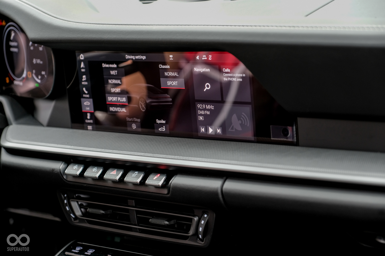 中央10.9 吋的保時捷通訊管理系統,讓座艙的科技感大大加分,其中更包含了利用大數據整合的網路導航與Porsche Connect Plus系統,讓全新世代的992有著更好的使用感受,而變化較大的可能就屬排檔桿造型了,隨著車尾的扁平化設計,排檔桿也採用了扁平的思維,雖然在現今科技的輔助之下,排檔桿的存在可說是沒有必要,但這樣的造型同樣也是在挑戰著Porsche車迷的口味。