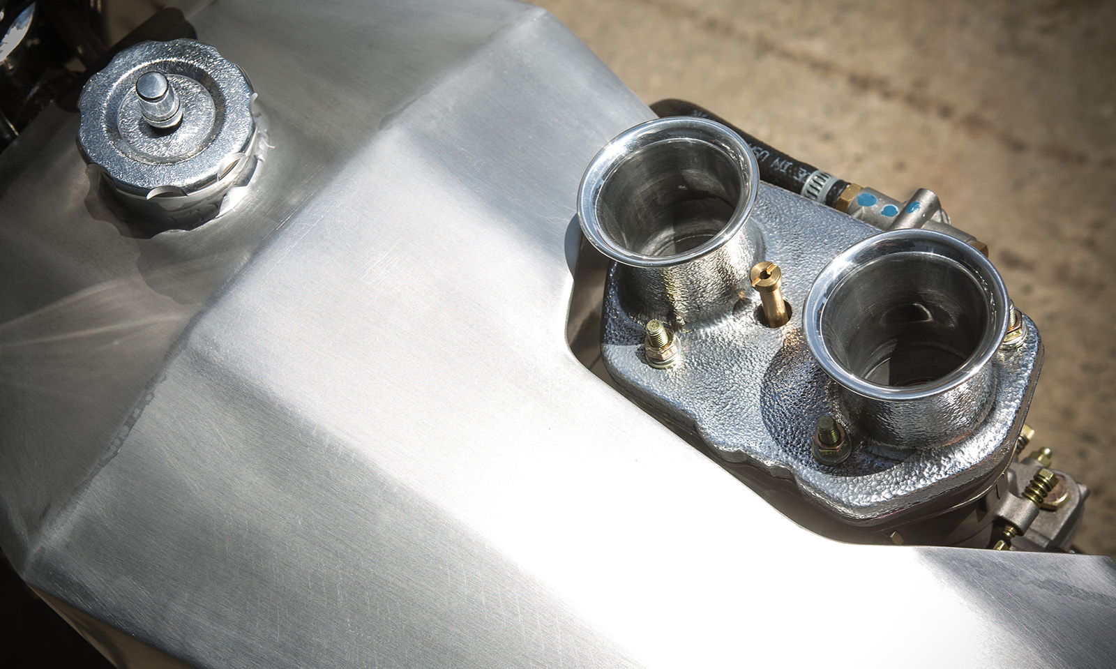 接著來到最令筆者佩服的部分,Mark Lloyd將油箱的位置安排在坐墊後方的尾殼裡,這不僅是在金屬工藝上的視覺饗宴同時包含了油箱的用途,達到了視覺與功能性的完美平衡,這及便在手工車上也顯少看見這樣的表現,相信各位讀者讀到這裡的時候應該像我一樣震驚,但同時也這也再一次的印證只要在手工車的範疇內,任何天馬行空的想法都有被實現的可能。