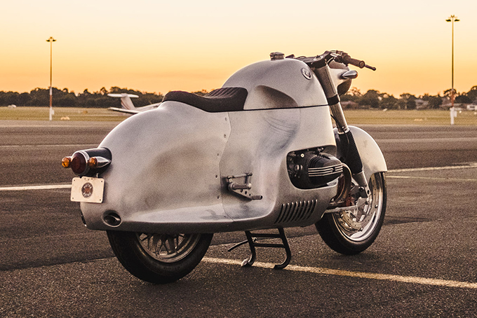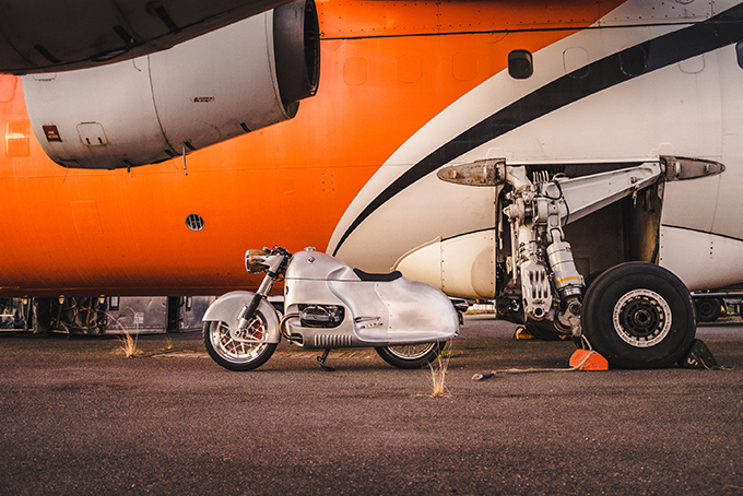 這輛車在四年前開始打造,而靈感是來自於他們對Auro Union的熱愛,熟悉汽車市場的朋友應該還記得,在去年初的台北車展上,Audi展出了一輛Auto Union Type C,而這輛R100 RS的設計靈感就來自於他,並且加上了1930~1950年間的飛機設計概念。而選則BMW R100 RS進行改裝除了他相當經典之外,同時這輛車也是第一輛裝有完整整流罩的量產摩托車,意味著車架上已經有針對整流罩的設置優化,當然搭載的心臟是980cc的水平對臥雙缸Airhead引擎,這也是那個時代的經典代表之一。
