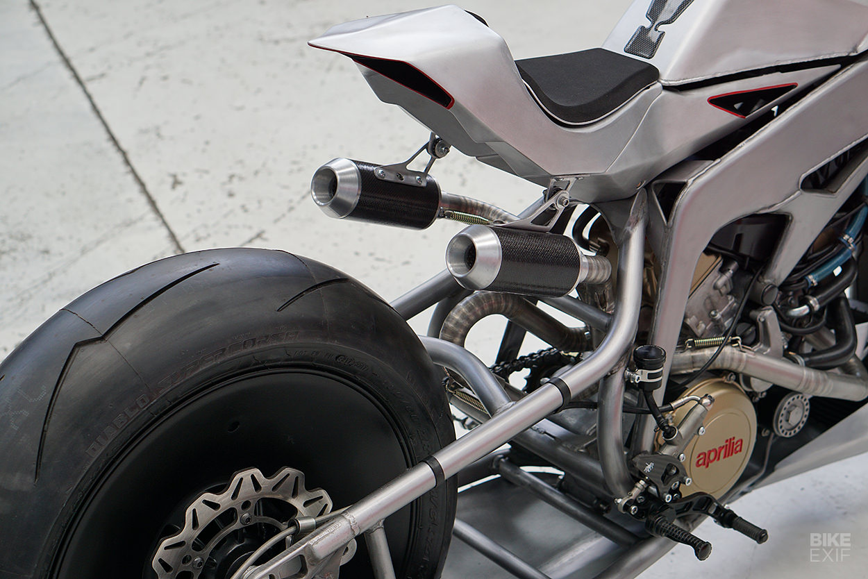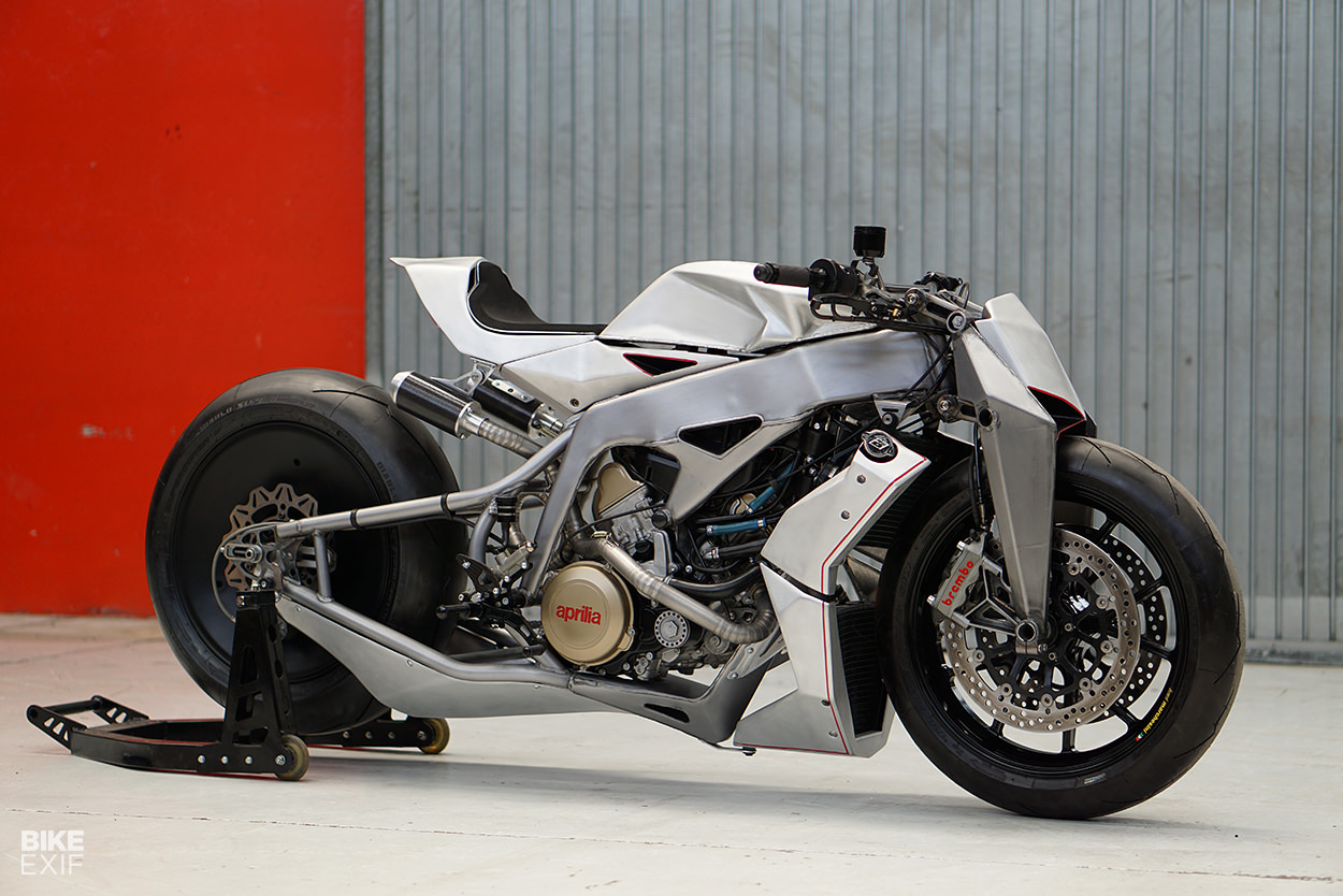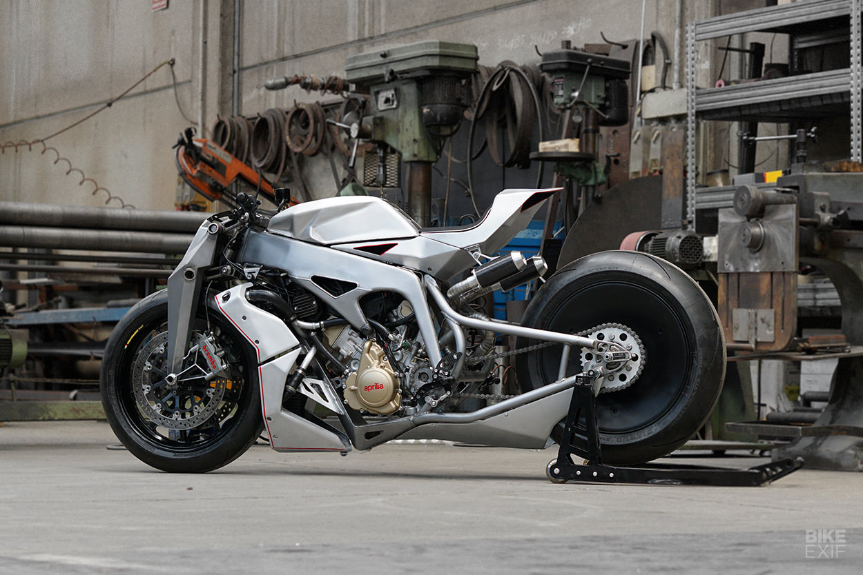 Simone工作室所推出的最後一款SCM自行車是基於杜卡迪SuperSport 1000 DS所打造,但那已經是一年前的往事。一年後,視覺系的發展又更加明顯,DUCATI對Simone的經驗與生涯中算是一個里程碑等級的成就,但這次的APRILIA卻更緊湊,也走向更極端的路:Simone用非比尋常卻又怪的令人心服口服的功力,讓我們感受到了客製手工車是何等的美好與樂趣無窮。