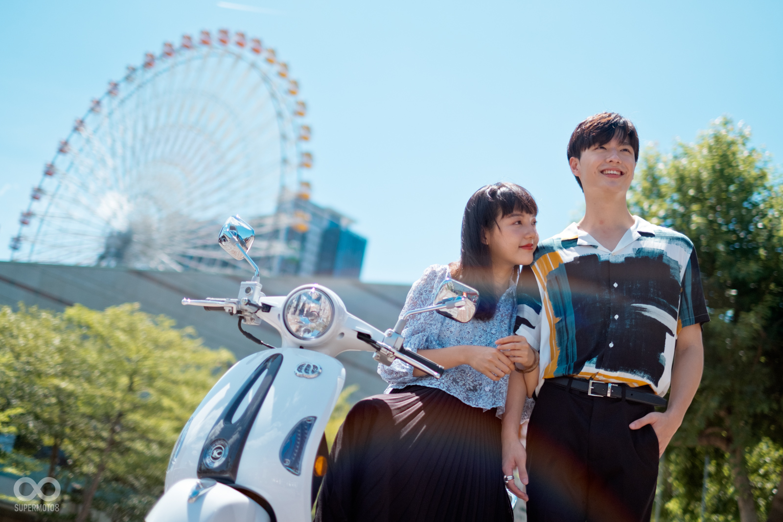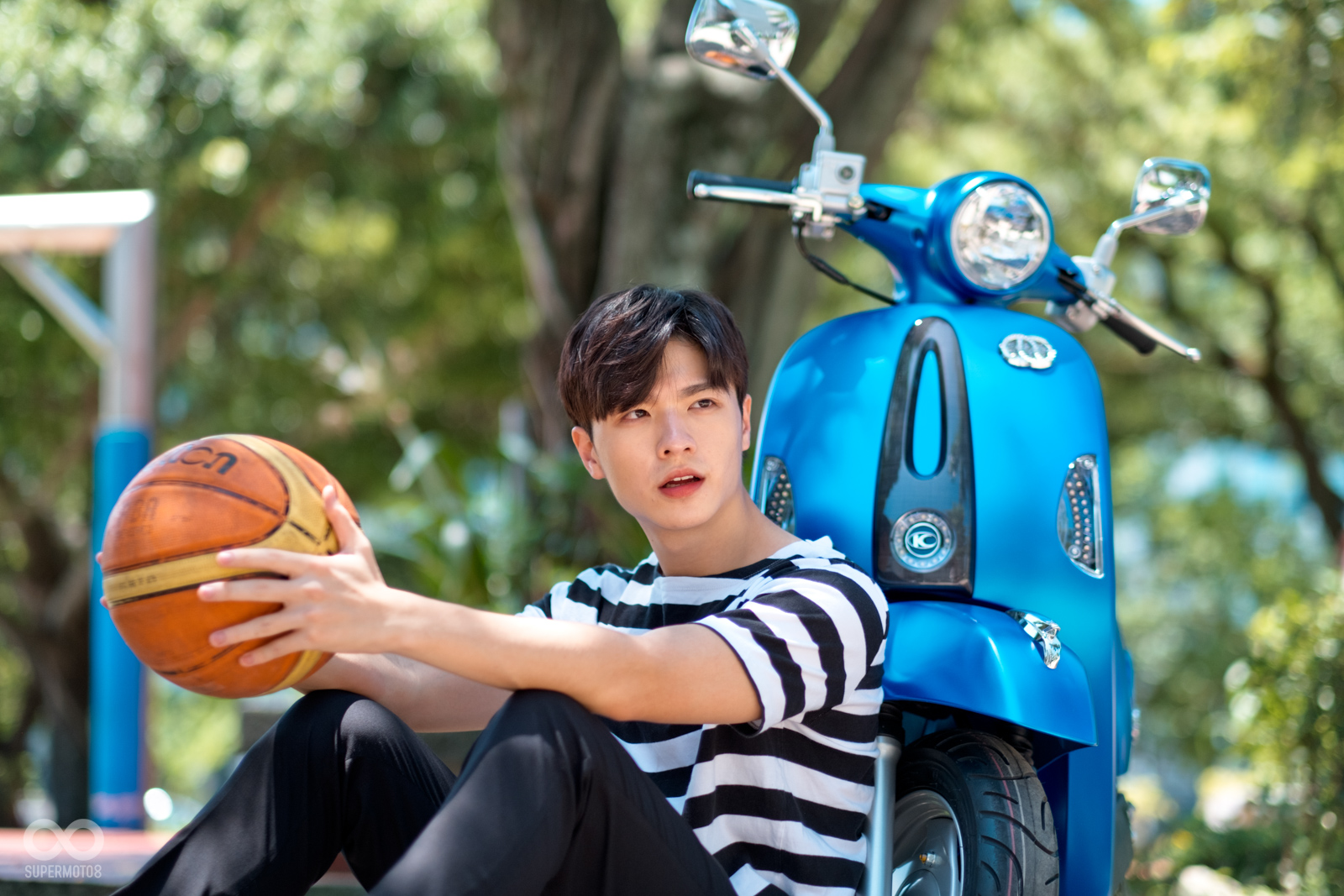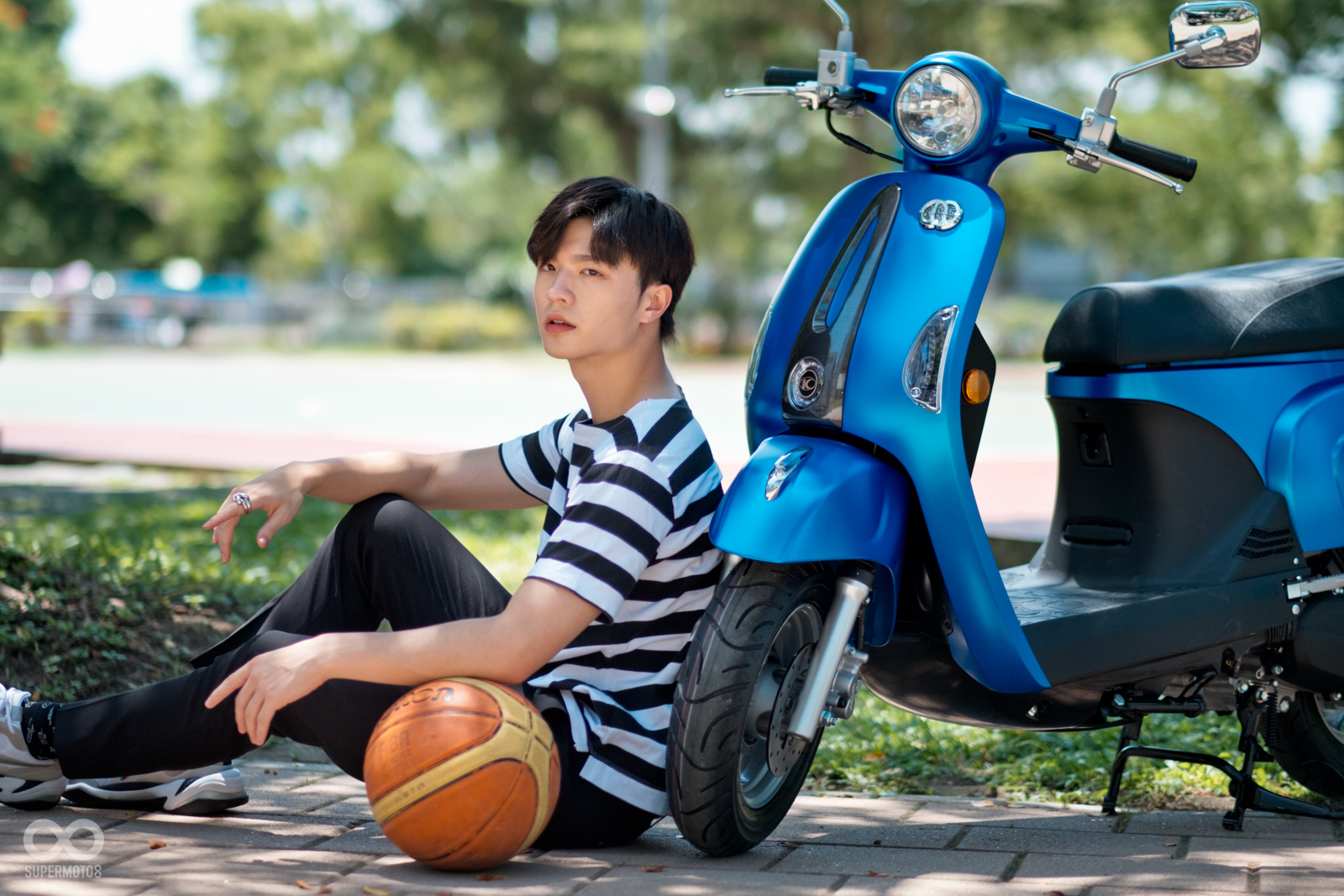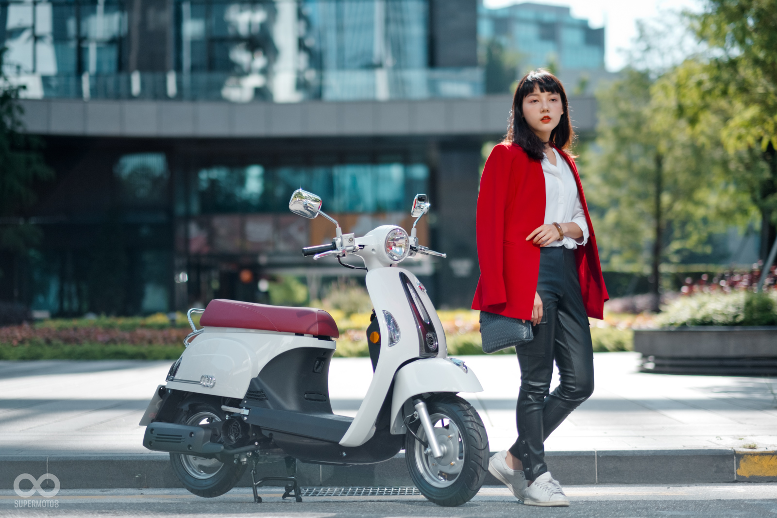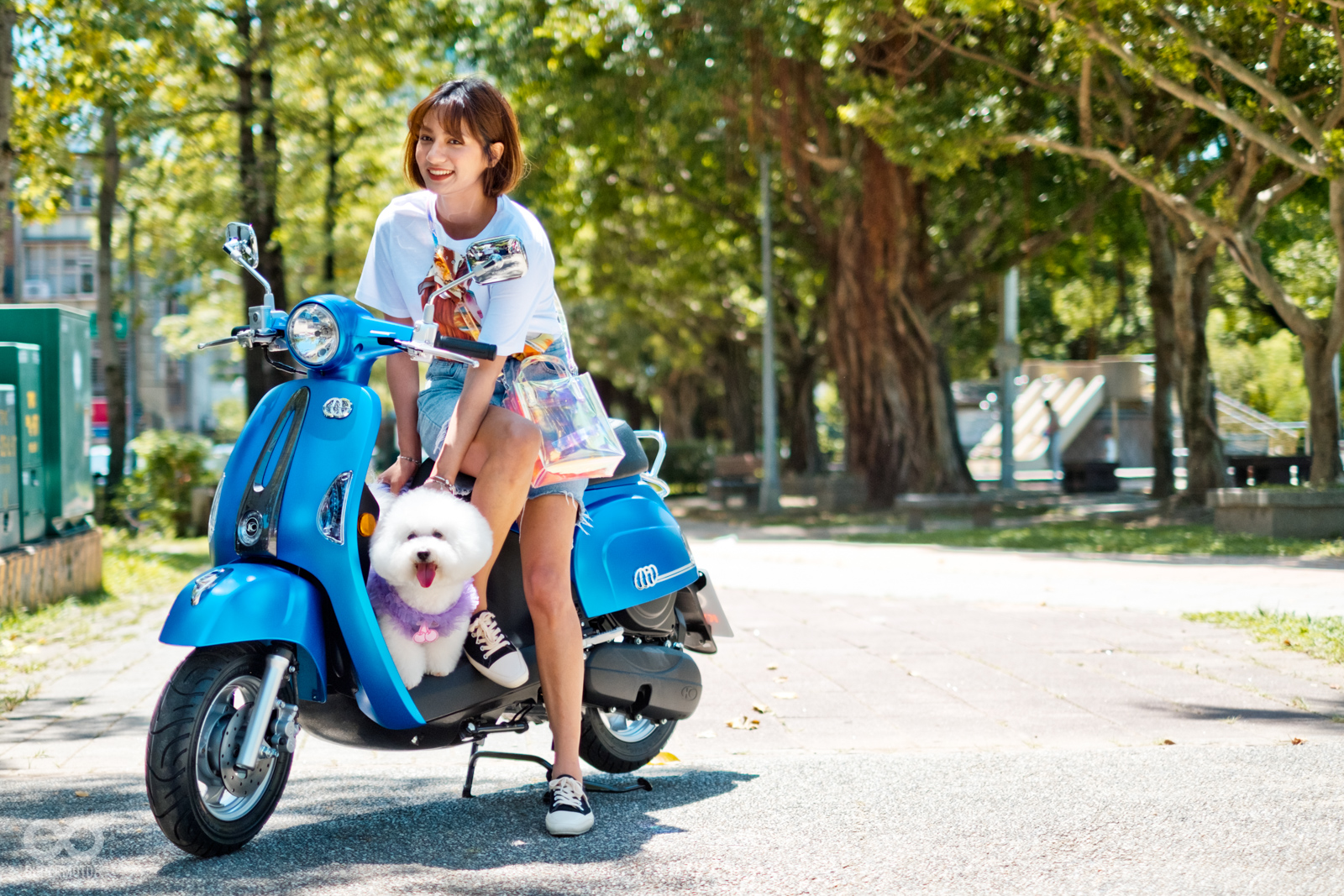 恰好拍攝當天台北天氣相當強朗,在太陽光的照射以及模特兒的襯托下,的確很難不注意到的水鑽在車輛前方、車側的存在感,而我也必須老實說雖然之前在路上總是時不時會看到MANY110施華特仕版,但從沒仔細看過這些水鑽的質感,經過拍攝工作後才實際暸解到這些水鑽的效果遠比想像中強烈,比起加個貼紙的效果,實體的水鑽的確明顯、有感不少。