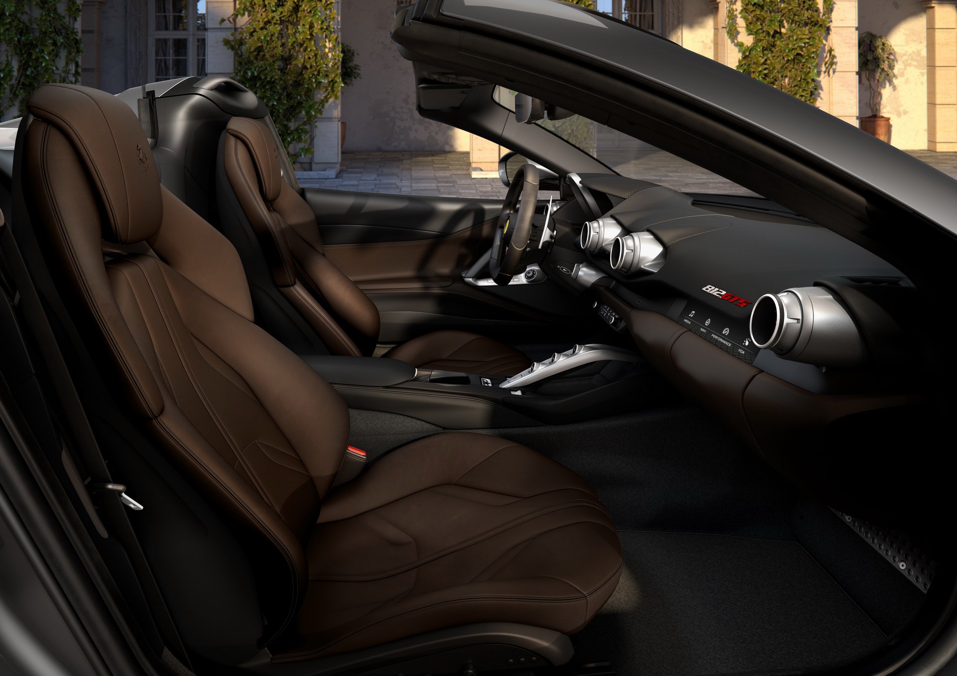 跟每一輛現代的Ferrari敞篷車一樣,812 GTS採用電動硬頂的配置,只需要14秒就可以完成開關篷動作,並且可以在45km/h以下操作,後方也有一個電動的擋風板,在開蓬狀態下可以有效減緩風進入車艙內部。因為敞篷的關係讓車輛後方進行重新設計,除了行李箱蓋的造型有些改變之外,後分流器也進行重新優化,彌補了因為敞篷設計而取消後輪拱處的導流氣孔。