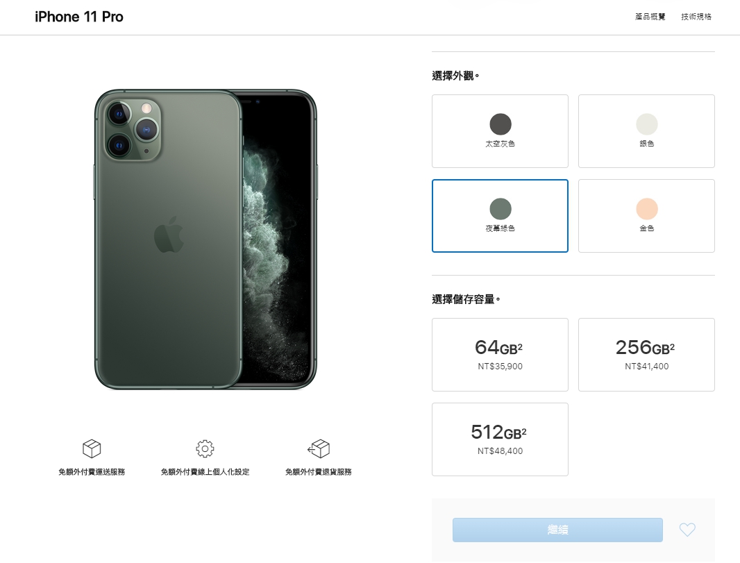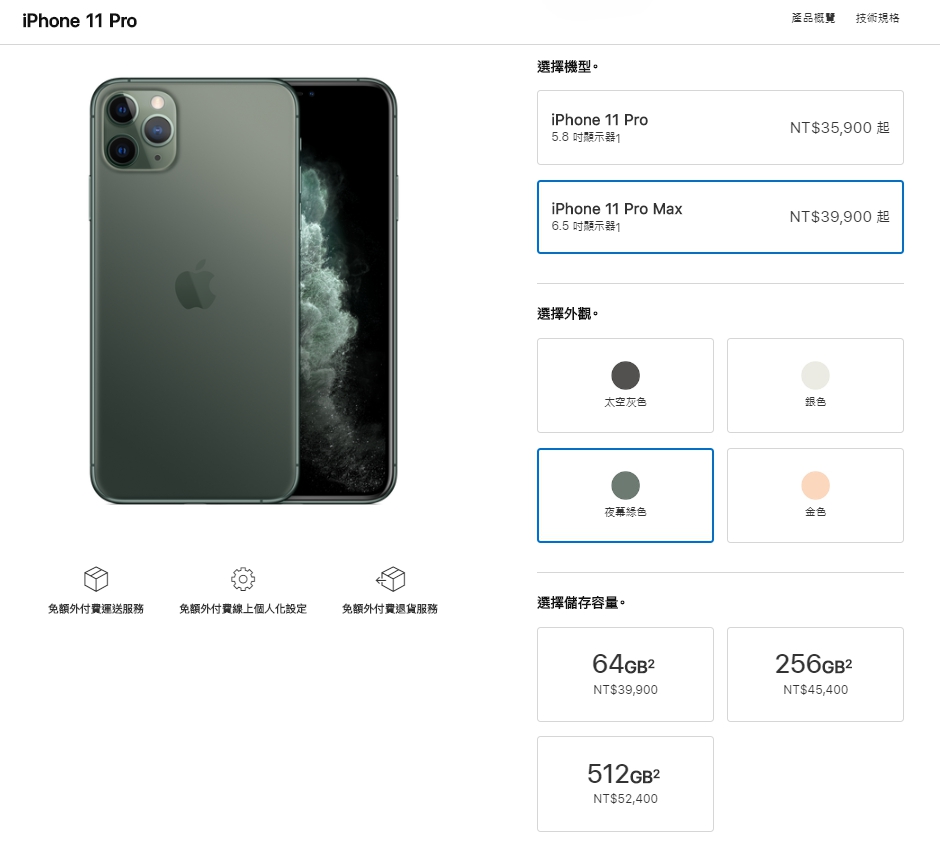 iPhone 11 Pro/Pro Max有64GB、256GB以及512GB三種版本,售價分別為64GB 35,900元、256GB 41,400元以及512GB 48,400元;iPhone 11 Pro Max售價則為64GB 39,900元、256GB 45,400元以及512GB 52,400元,iPhone 11/Pro/Pro Max將在9/13開放預購。