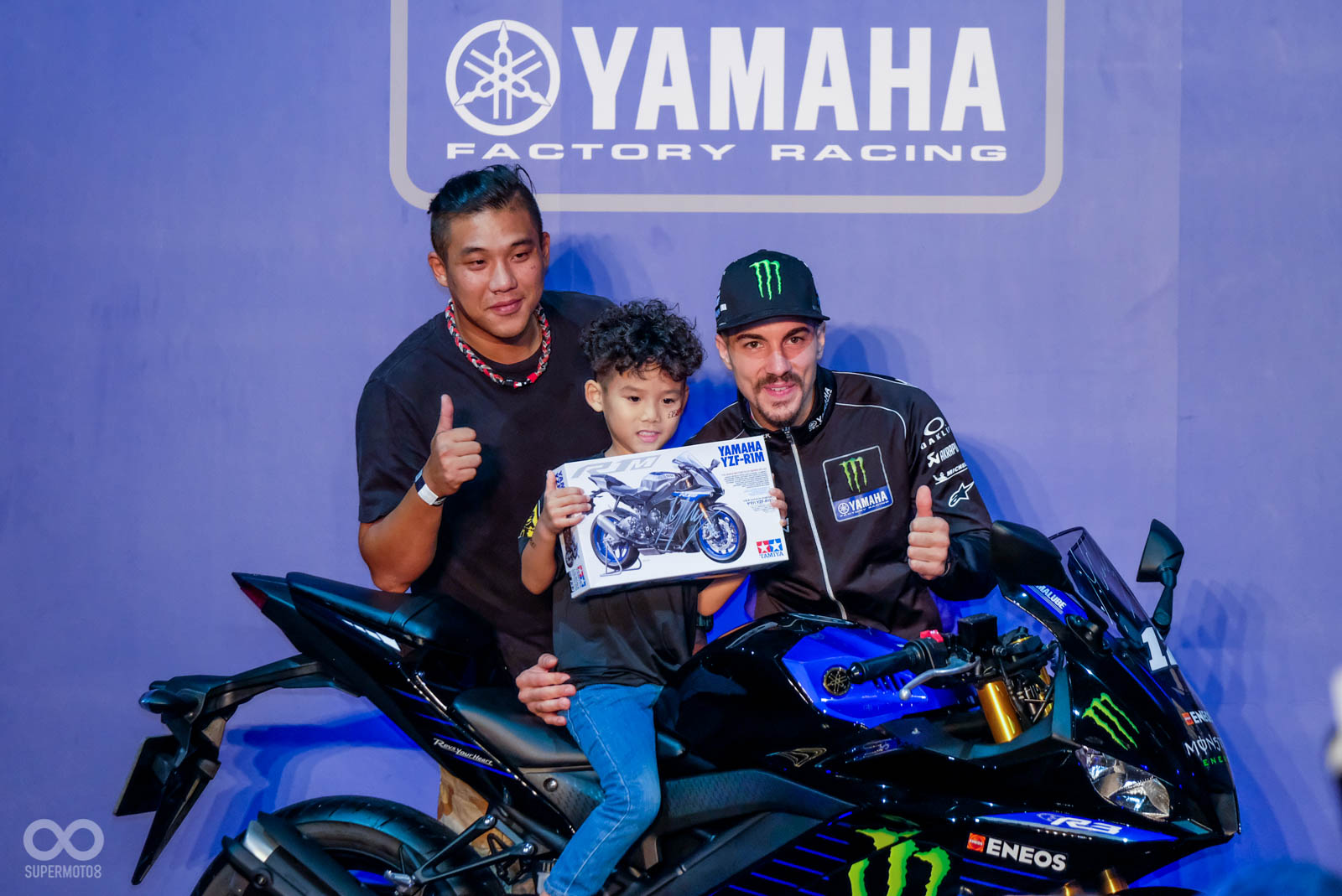 活動現場也邀請一位忠實的YAMAHA GP小粉絲上台與Maverick Viñales互動,這位平時騎乘PW 50的小粉絲上台為Maverick Viñales加油打氣,希望在接下來的日本站甚至是下個賽季都有更好的表現。而Maverick Viñales也回送這位小粉絲重量級大禮,是相當受歡迎的TAMIYA 1/12 YZF-R1M模型!