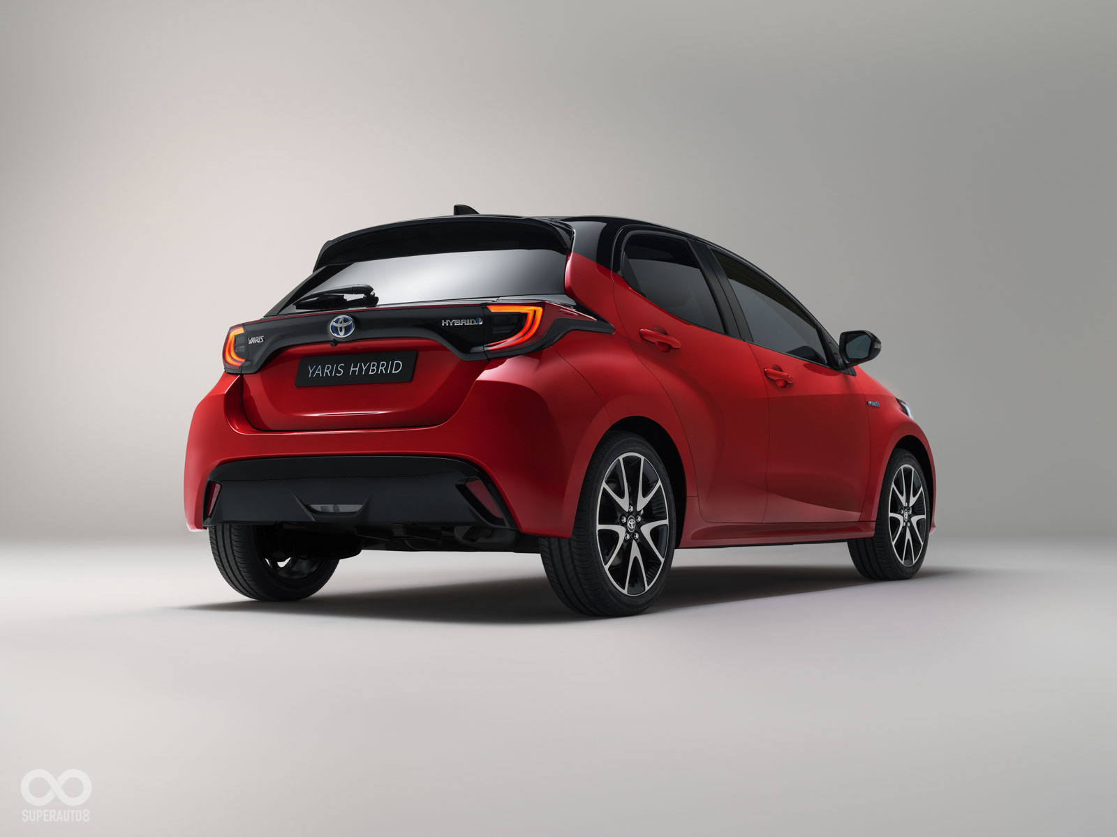 全新的TOYOTA YARIS依舊堅守小車尺碼,值得注意的是在首波曝光的新聞照片中,出現了近年流行的Two-tone雙色調配色,為整體車型的年輕度與活力感增添不少,尾部C柱看起來下斜的更為強烈,配上大面積的LED尾燈,尾燈造型有點類似自家的CH-R的立體燈殼造型。