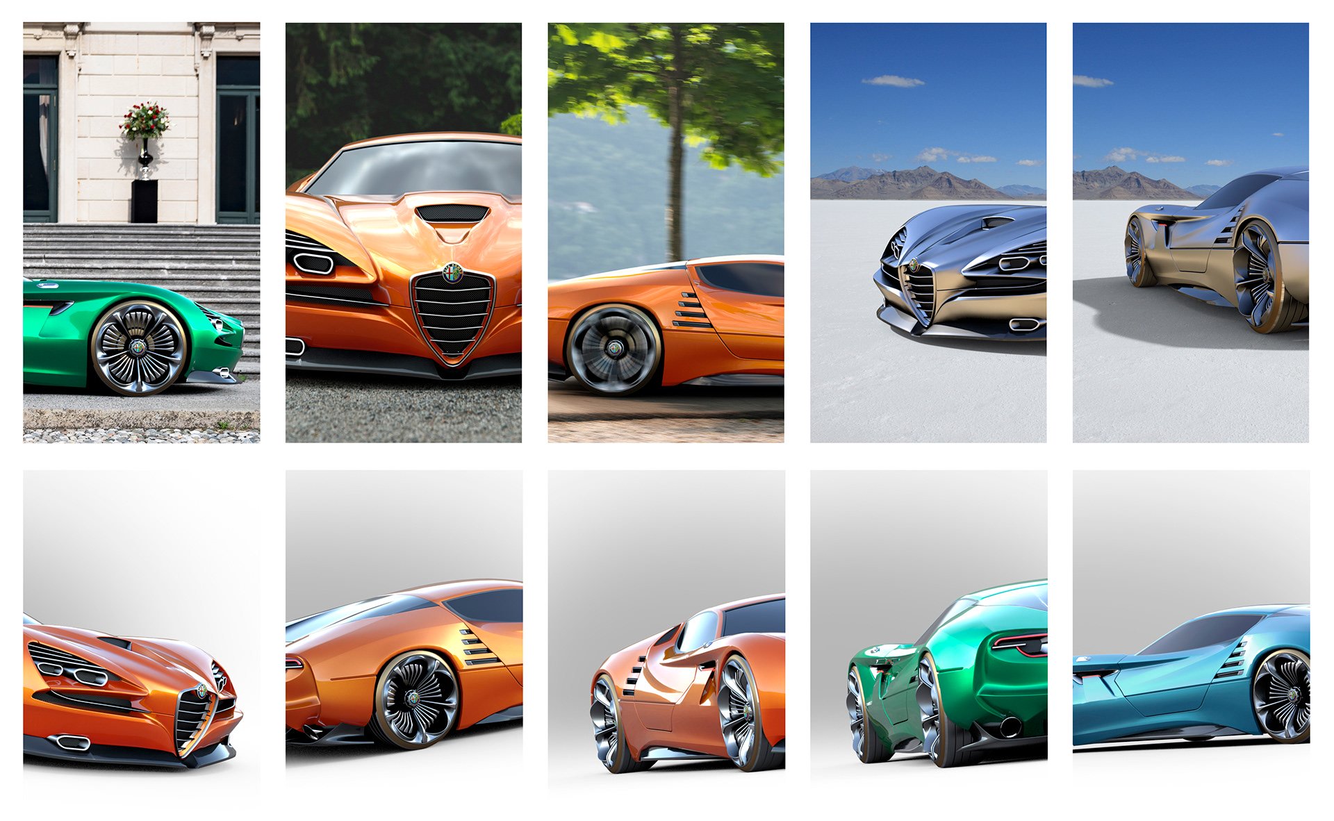 當然這一切都還是在電腦的繪圖階段,是一位設計師Luca Serafini所打造,因為他的父親曾經有過一輛Montreal,他表示:「早在1986年,我父親就買了一輛橘色的Alfa Romeo Montreal,除了排氣管使用了Ansa Marmitte之外,一切皆是原廠的配置,我記得那天晚上他帶著V8回來停在車庫後方,煙霧在四處繚繞而我第一個看到的是那紅色的尾燈以及鍍鉻尾管。」