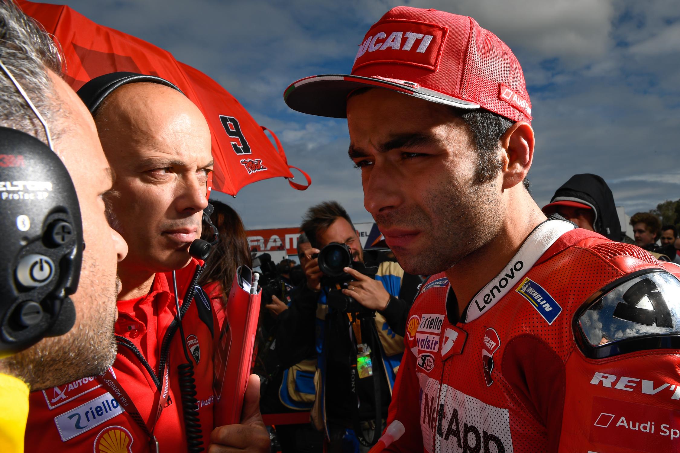 「我感到抱歉,因為在正賽之前我做了一個完全符合我的目標的周末。」Petrucci說,「我早上感覺很棒,車子狀況很好,我感覺也不錯。那時候Marquez在內側,我不得不向外靠一些並且走在比較髒的路面,後來我看到Fabio的後輪開始打滑,同時我也失去後輪抓地力,我被拋向空中,在摔車之後我注意到我也把Fabio也連帶鏟了出去,我對他感到抱歉,很遺憾我們本來可以度過一個愉快的周末,也許也有機會登上頒獎台。」