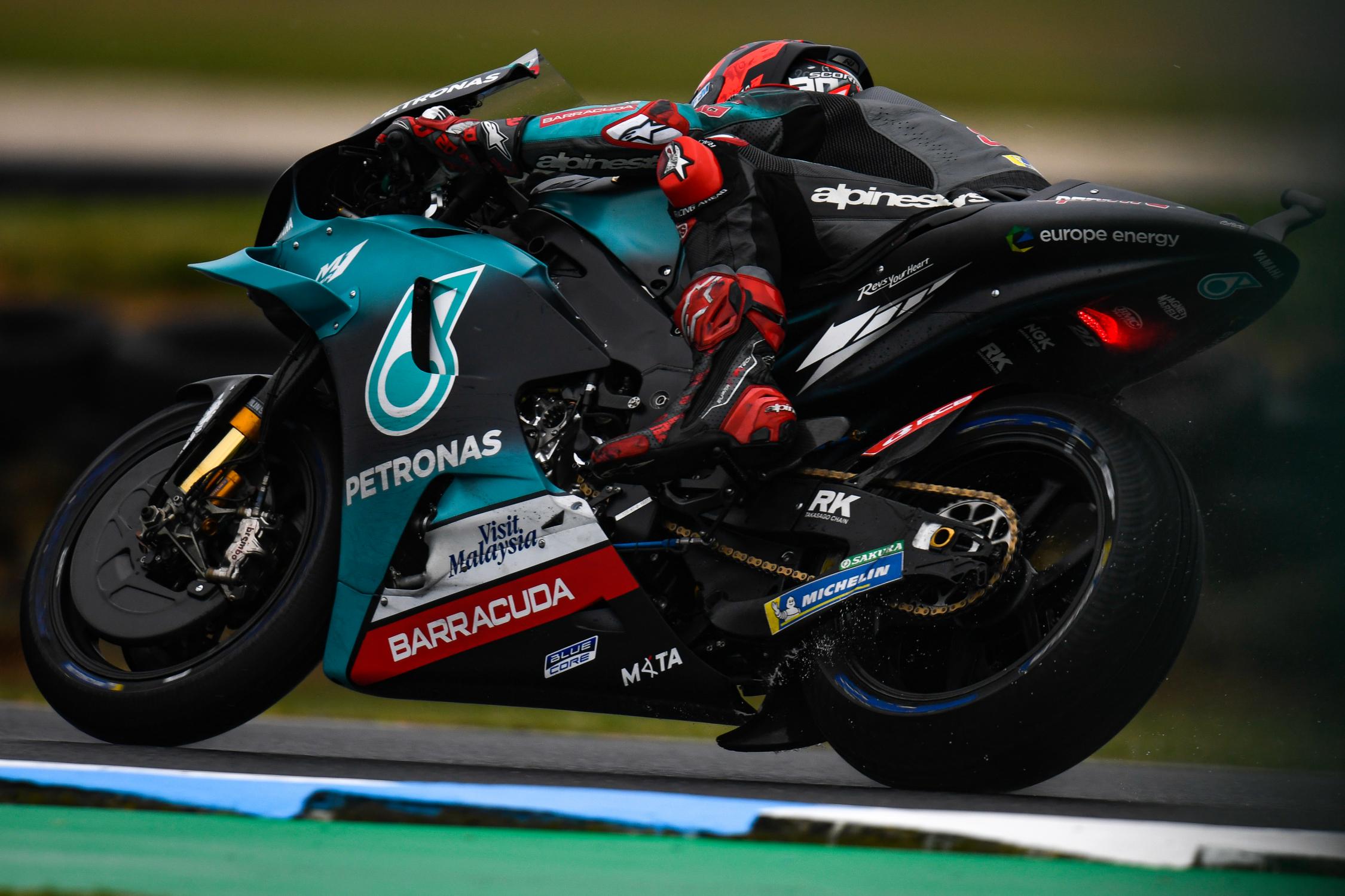 第一段自由練習的嚴重事故讓Quartararo的左腳踝受傷,即便退出FP2,但在周日上午的排位賽中,法國車手依舊表現得相當出色,以頭排第二之姿發車,這表示當天只有Maverick的速度比這位左腳踝還有血塊的20歲少年還要快而已。