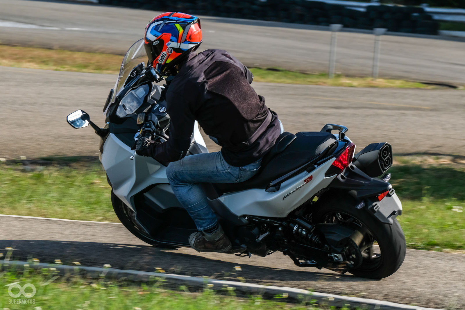 本次舉行於新竹安駕中心的試乘體驗,許多彎角都是刁鑽的小彎,MAXSYM TL在轉過小彎角時還是略微憋扭,但也比起多數大羊靈活不少。