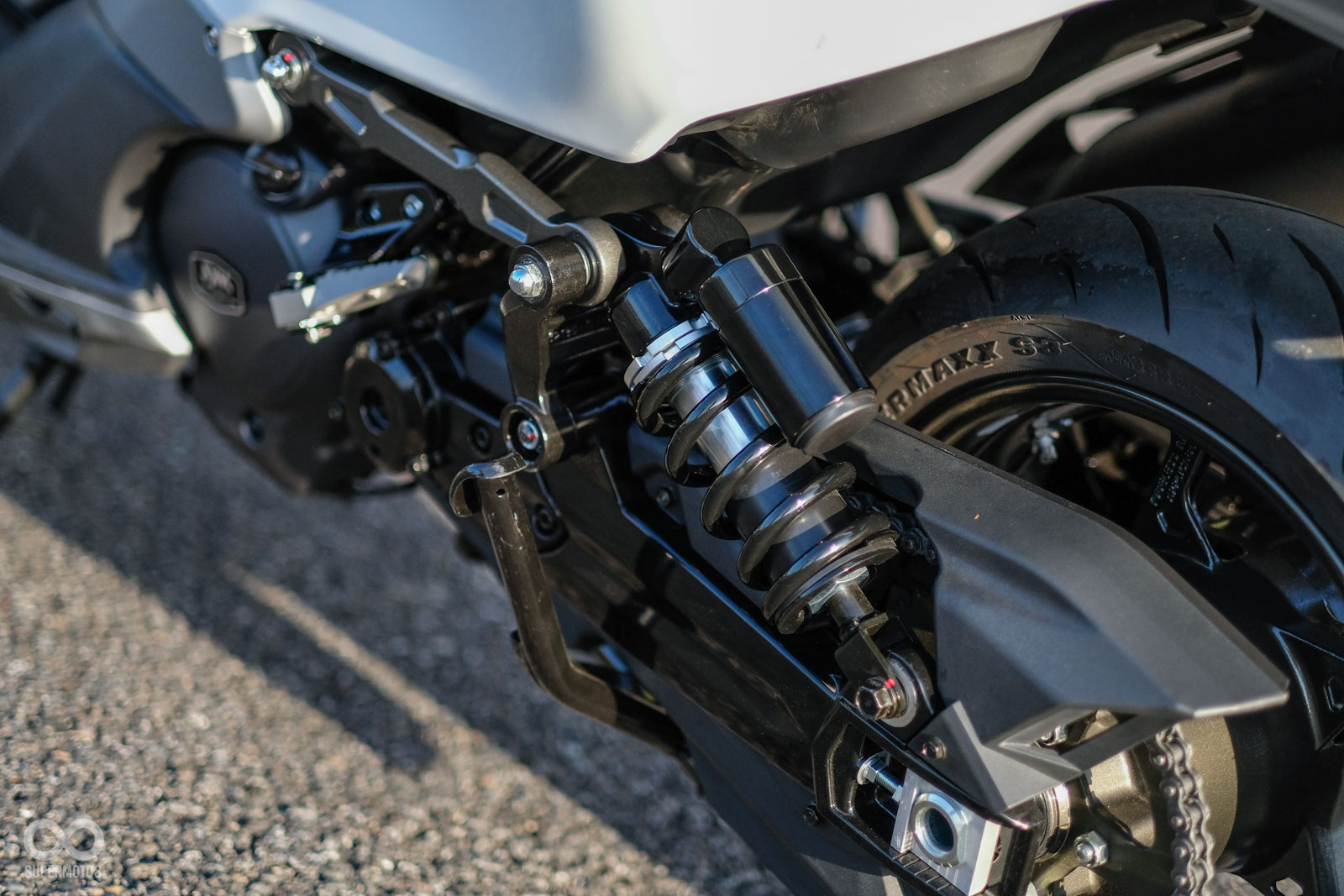 雙缸的40匹的動力再加大油門角度後明顯湧現,相較於過往TMAX的高轉優異表現或者是AK的猛爆低扭,TL表現更加中性,輸出感受顯得均衡線性許多。