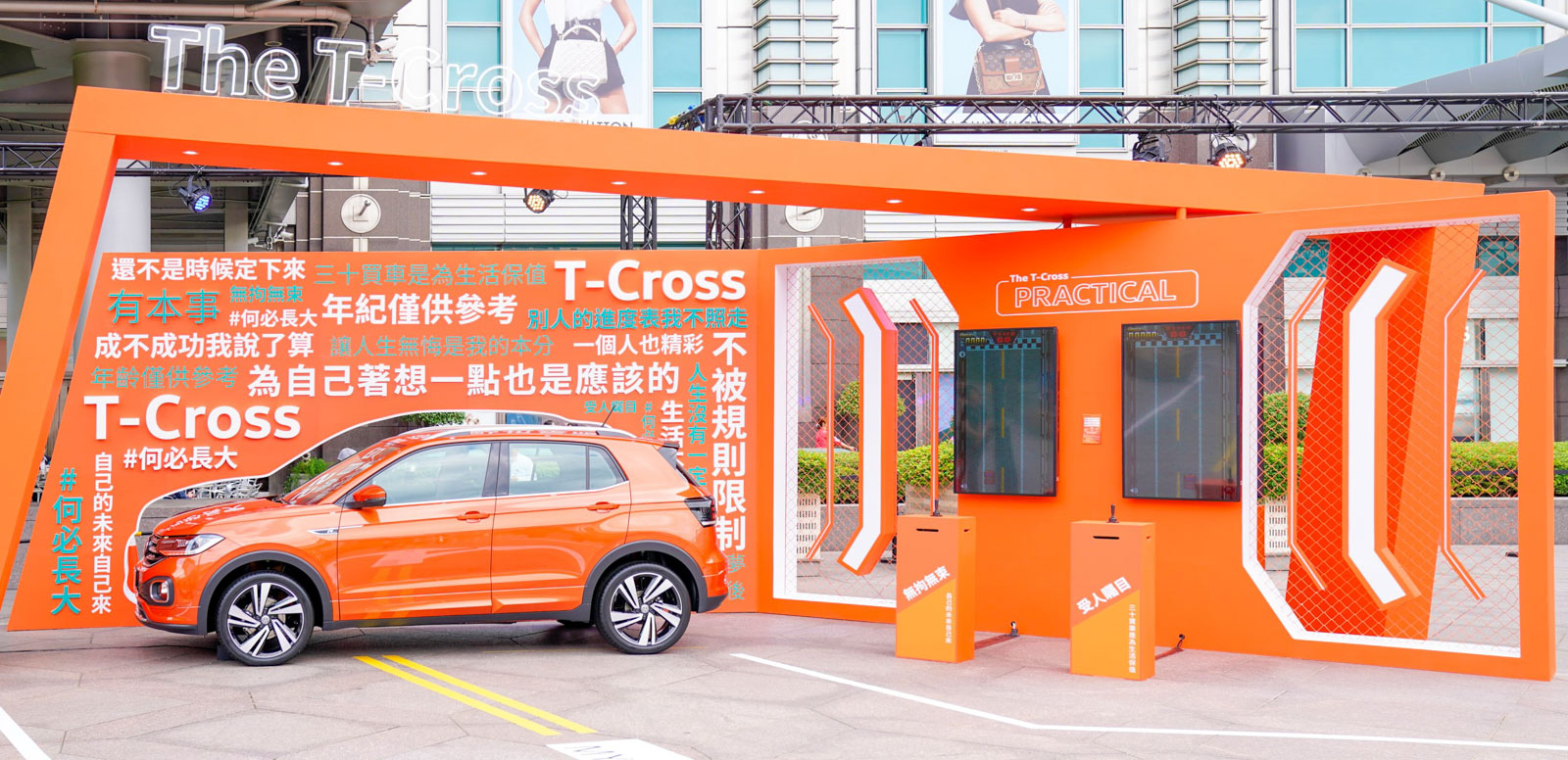 在The T-Cross發表會後,台灣福斯汽車旋即於11月9日、10日兩天週末,假台中三井OUTLET中央廣場舉辦「MY WAY這就是我的大人生活The T-Cross新車登場X快閃潮溜」活動,現場不僅展示The T-Cross Style Design及Style R-Line,更精心打造專屬潮流溜滑梯,消費者可於現場憑MY Volkswagen APP領取體驗卷遊玩和參與舞台活動,預約試乘更可獲得限量Volkswagen精美好禮。此外,自11月16日起連續4個週末,The T-Cross也將於全台9個Volkswagen展示中心展出,歡迎消費者親臨鑑賞,擁有純正德制工藝的Volkswagen最新跨界休旅。
