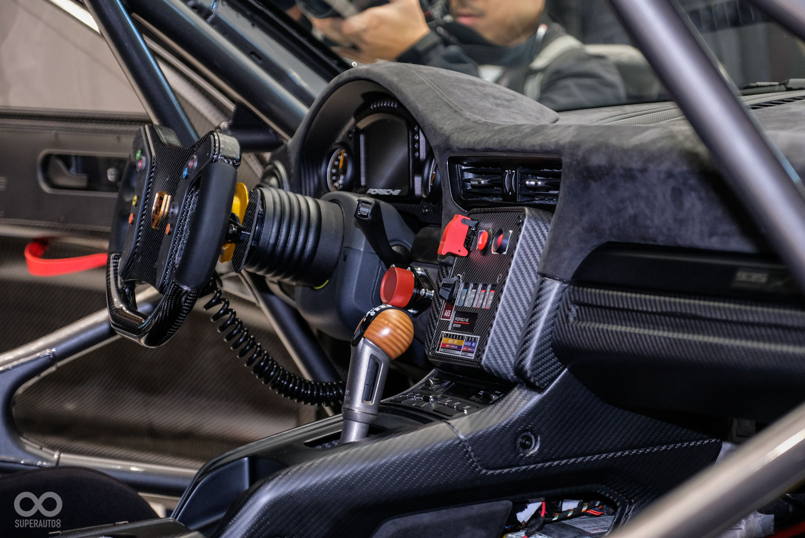 駕駛艙內部也運用同樣設計理念:車內排檔頭以層壓木材打造。碳纖維方向盤及其後的彩色螢幕儀錶板則取自2019年推出的 911 GT3 R車款。大型的防滾籠結合賽車桶型座椅以及六點式賽車安全帶以確保最佳安全性。副駕駛座可列為額外的選配項目。