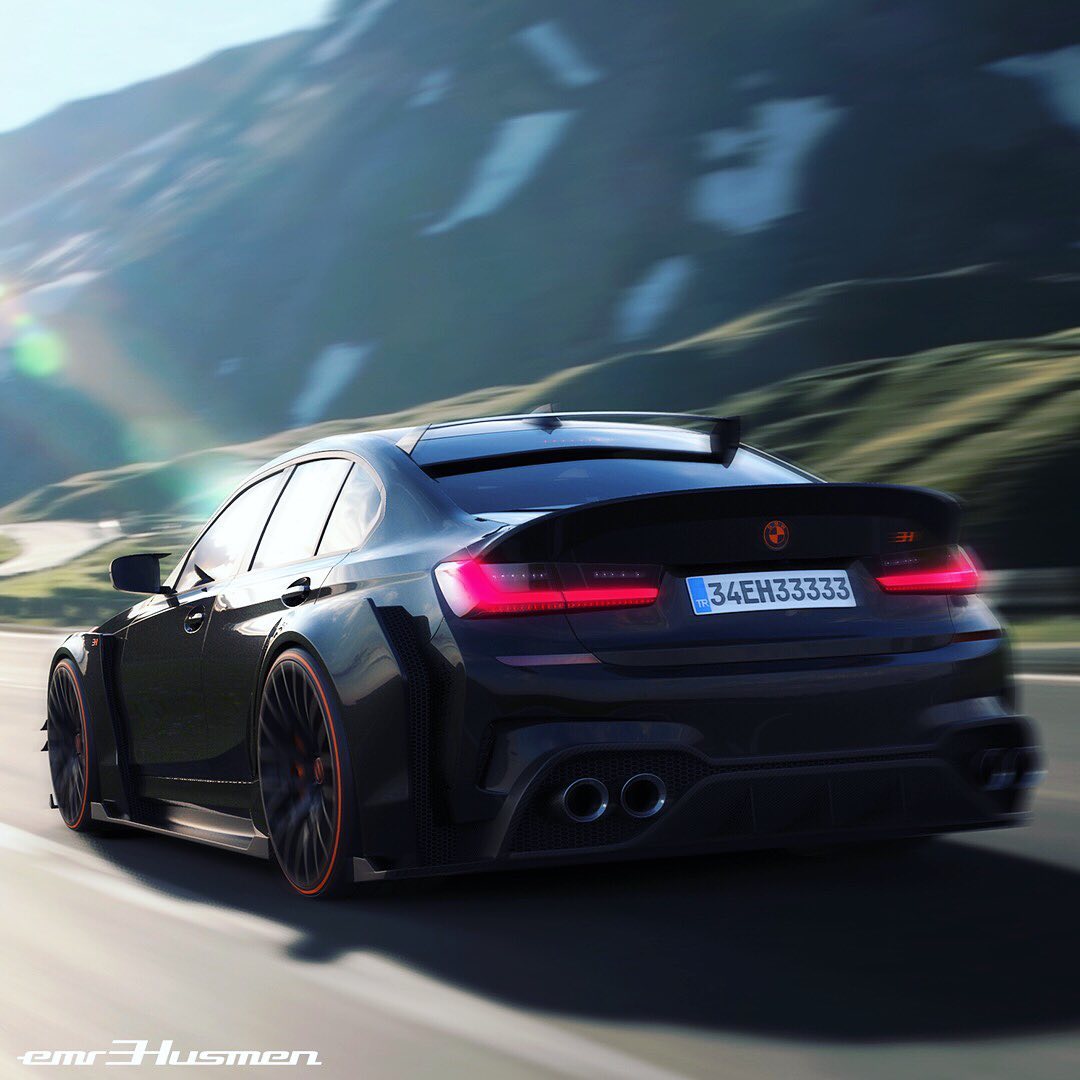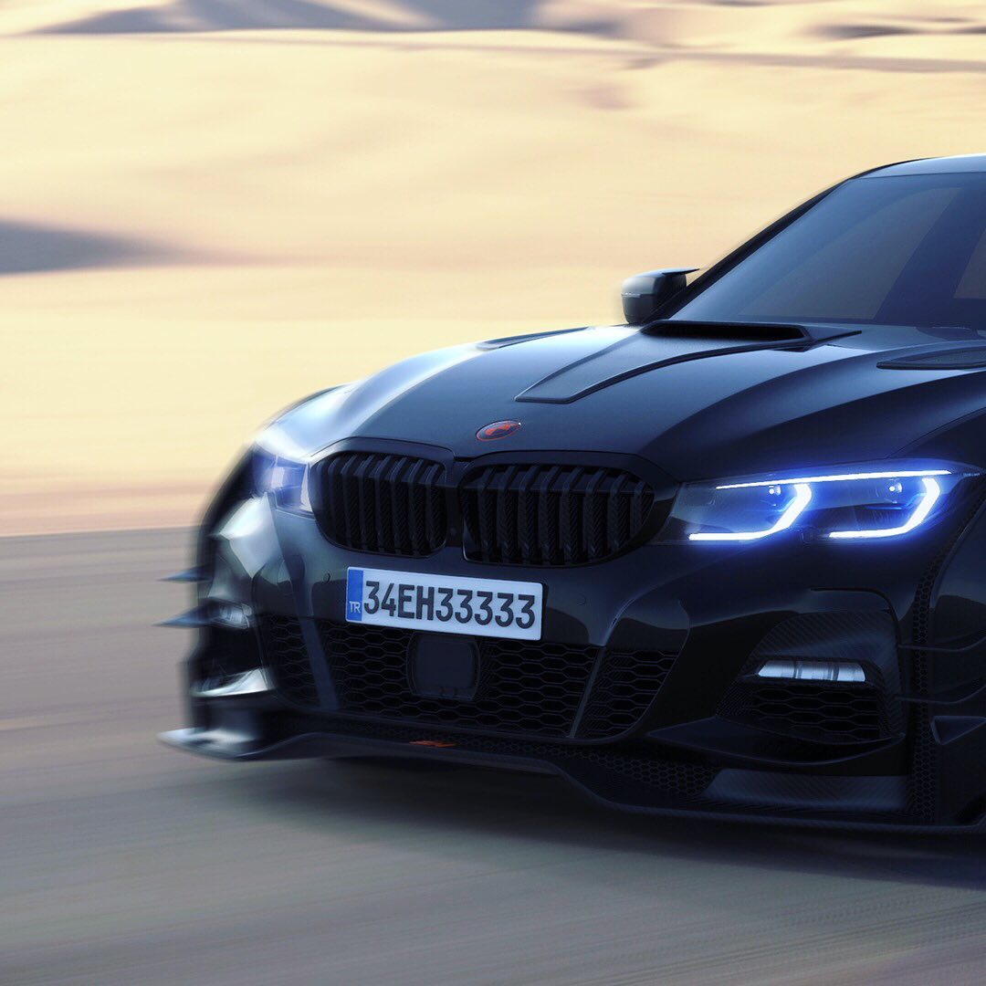 由Emre Husmen繪製的設計圖中,從車頭看去可明顯發現他幫BMW 3系列換上全新的前保險桿,並加上了碳纖維點綴前進氣孔,兩旁則加上碳纖維的擾流翼,並且搭配全新設計的引擎蓋,來對應更狂野的3系列外觀。