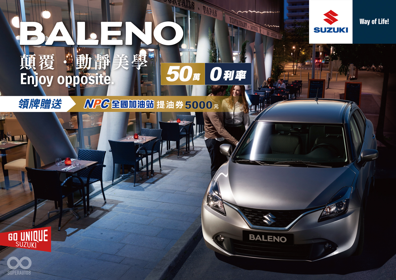 BALENO售價:708,000 / BALENO (配備多功能觸控式螢幕)售價:728,000