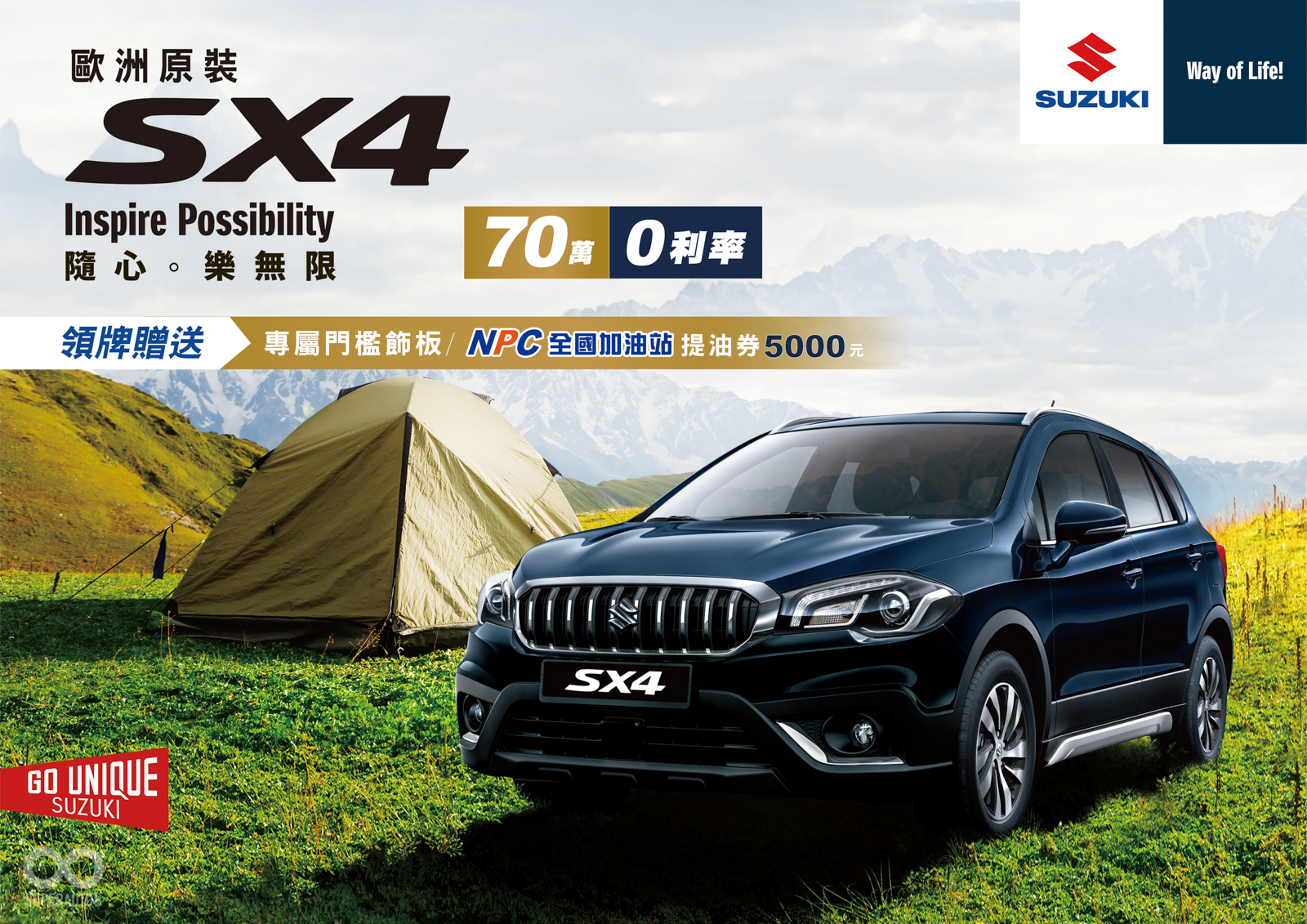 SX4一輛能夠滿足全家人需求的家庭用車。雅致的歐式設計,陽剛的強悍外觀,完美詮釋跨界魅力,令人耳目一新。動力系統方面,SX4搭載了1.4L BOOSTERJET缸內直噴渦輪增壓引擎,用渦輪增壓的原理平衡了原先排氣量降低的動能劣勢,將更多的氣體壓入汽缸,大幅增強了動能表現,不同於多點噴射,缸內直噴的噴油嘴口安置在汽缸內,不需等待氣門的開啟,達到節能環保的優異油耗(17.3 km/L)。搭配能滿足全家需求的寬闊後車廂空間,樂趣滿載430L想像大空間 滿足家人的冒險狂想,無論是城市悠遊或上山下海,都能輕鬆征服。不只體現舒適且輕快的駕駛性能,也能享受創意無限的生活收納!SX4,就是與全家人一起體驗新生活的最佳拍檔!