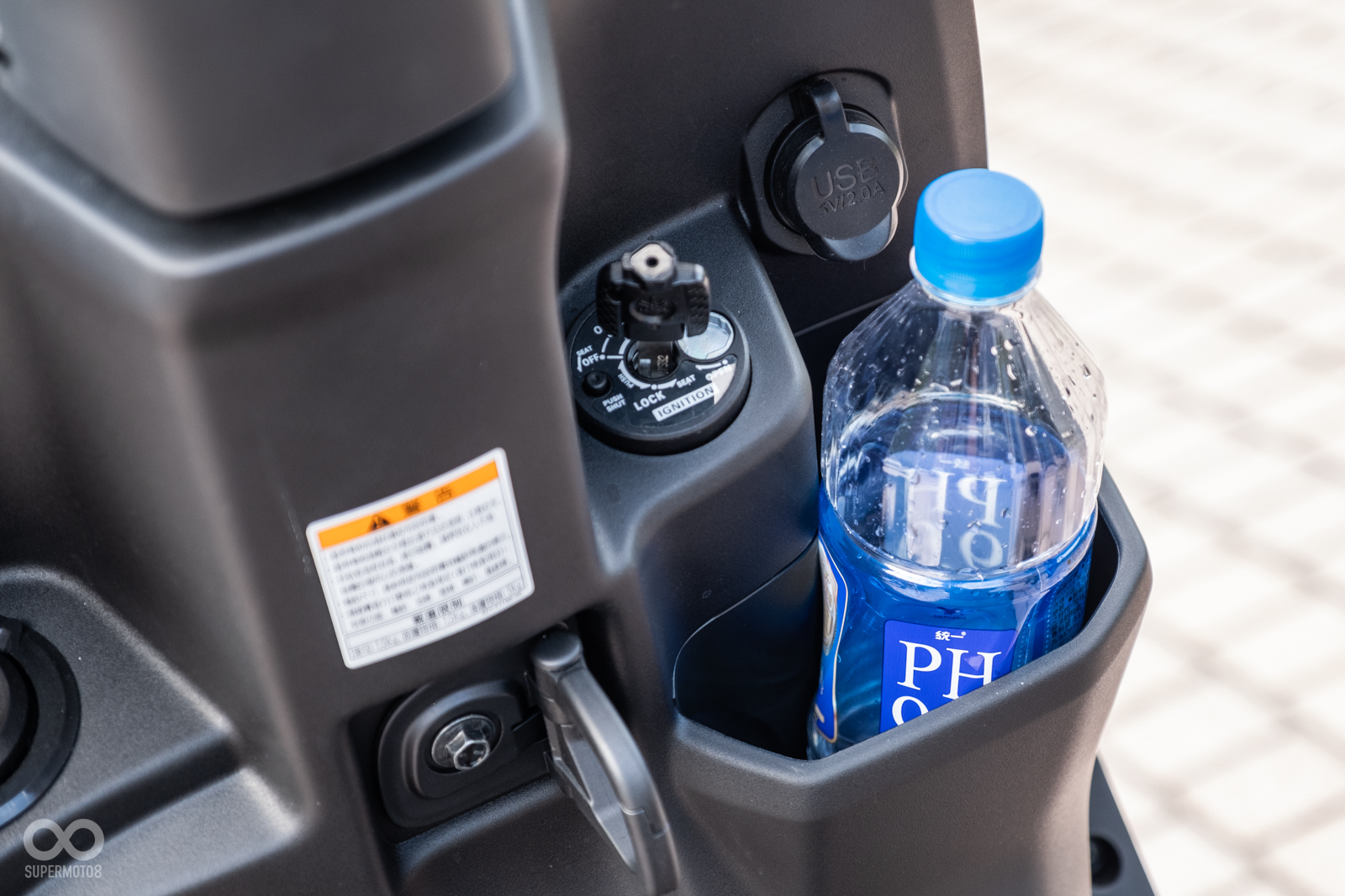 舒適配備上,儀表板旁加上菱格壓紋提升質感,另外115上頭那僅有12V插孔的設計在125上頭則改為USB插座提升便利性。坐墊下空間則與上代車型落差不大,全罩安全帽放入的機率微乎其微,3/4安全帽大帽體款式也無緣收納入車廂。但值得一提的是前置物空間經過加大,官方表示可放入700c.c.水瓶。