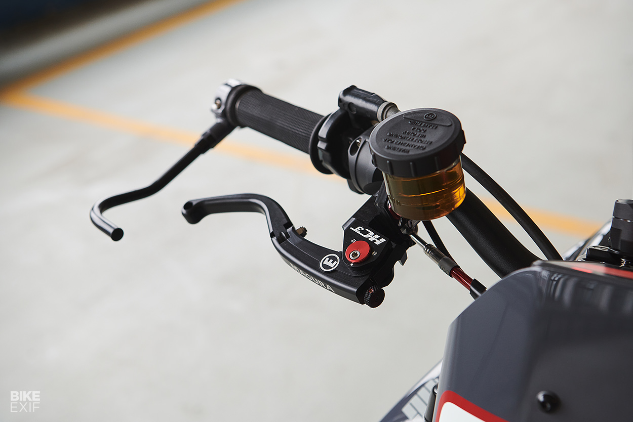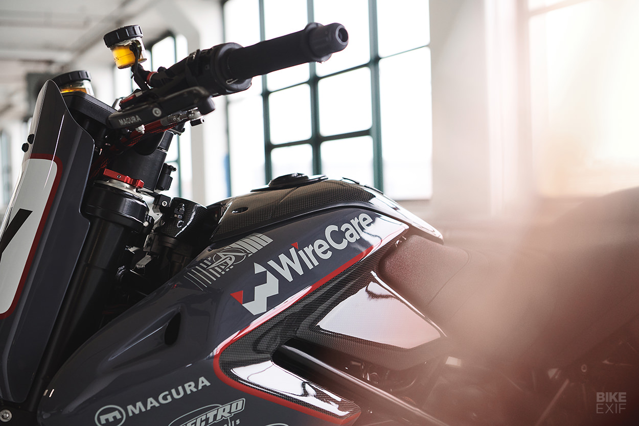 iOneMoto的Pelly Pan,R&G的引擎護蓋之外,Tony還選用了WireCare電線管理系統以及隔熱層,並安裝了Magura與CNC Racing後座。