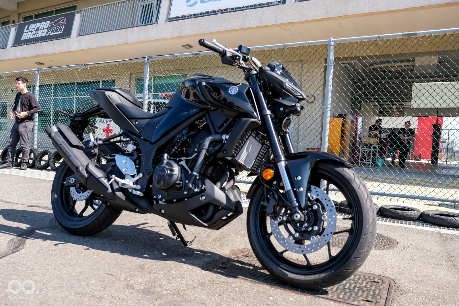 隨著發表會結束,我們也很快的下到麗寶卡丁車賽道,來進行2020 YAMAHA MT-03的試乘體驗,一坐上新款的MT-03馬上就能感受到整台車更有滑胎車的氛圍,握把提高44mm帶來的感受非常明顯。
