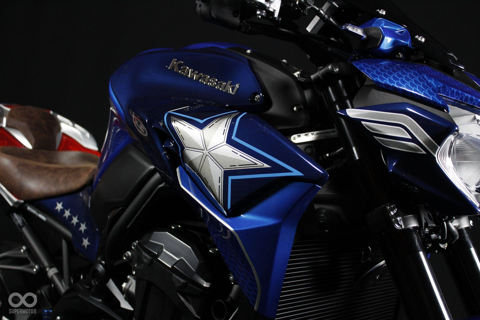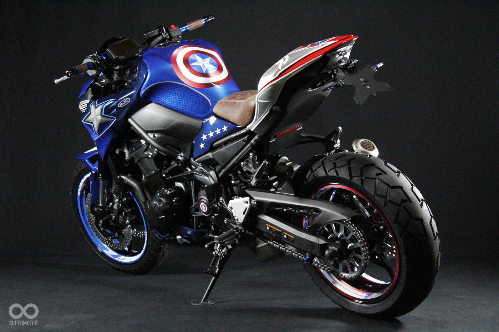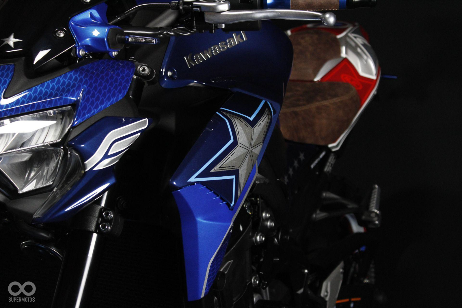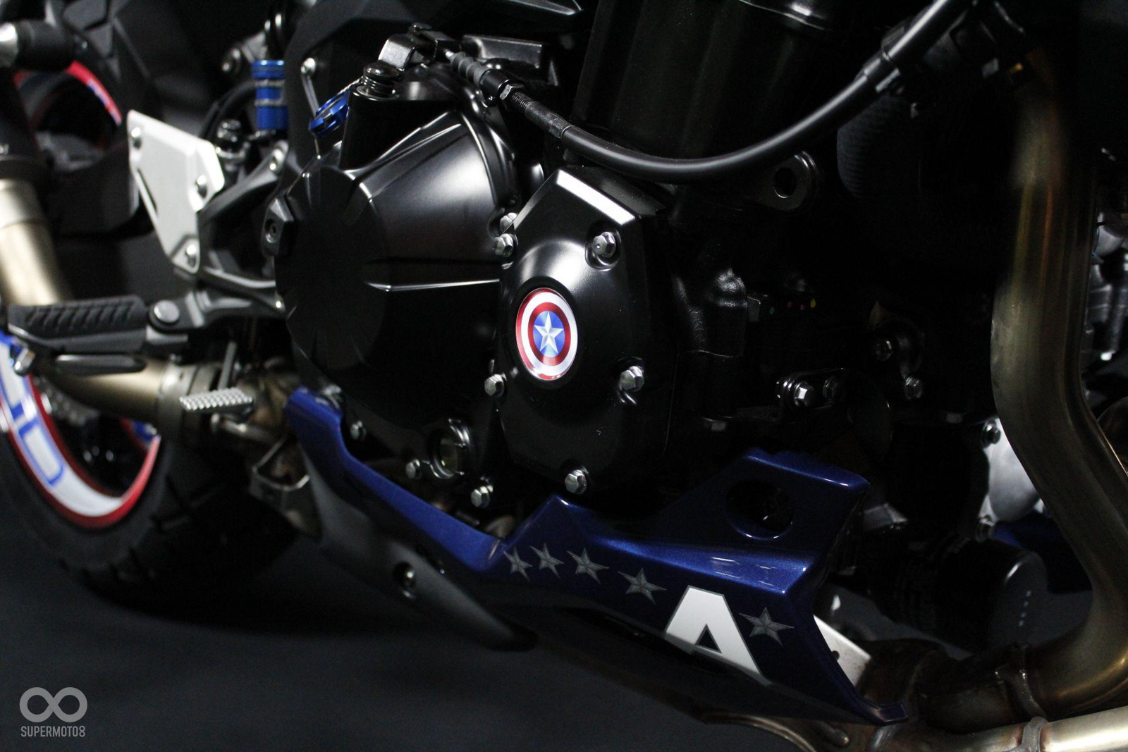 作為漫威超級英雄電影中的重要角色,美國隊長給人的印象絕對是正義、光明的正派象徵,雖然透過科學家注射血清才讓Steven Rogers從柔弱的男孩成為擁有強大能力的英雄,因此瑞士的KAWASAKI經銷商受到電影啟發,決定透過機車來呈現美國隊長這位英雄角色,他們選用剛在台灣上市的Z900進行改造,以Z900的肌肉線條加上精緻的塗裝,重現螢幕前美國隊長給人的力量。
