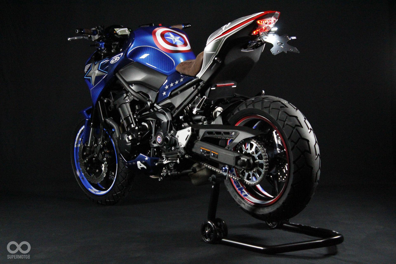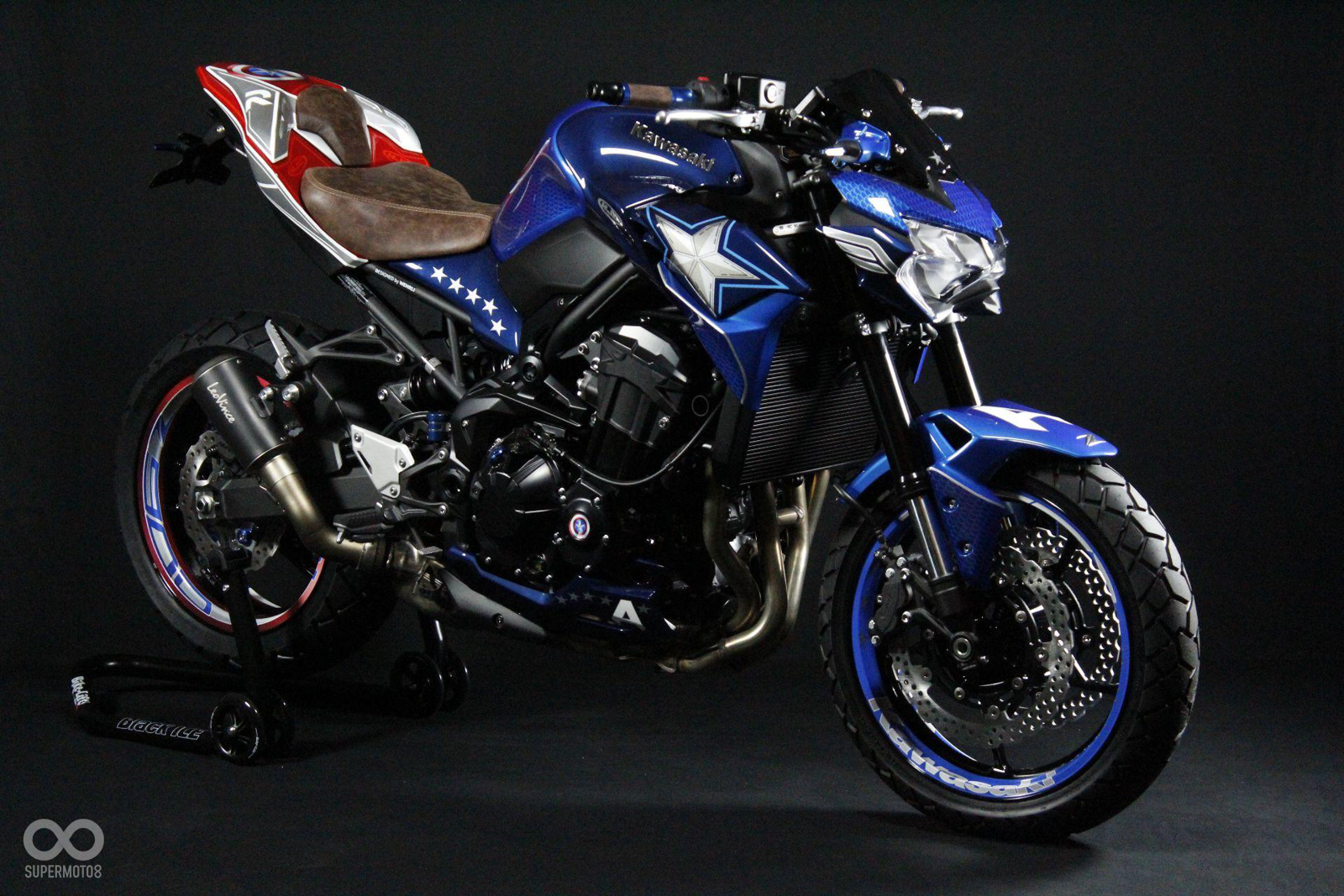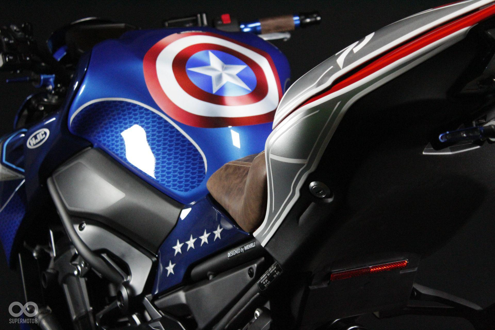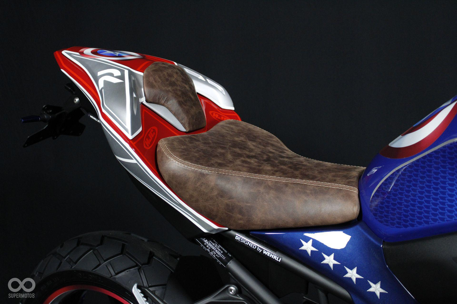 作為漫威超級英雄電影中的重要角色,美國隊長給人的印象絕對是正義、光明的正派象徵,雖然透過科學家注射血清才讓Steven Rogers從柔弱的男孩成為擁有強大能力的英雄,因此瑞士的KAWASAKI經銷商受到電影啟發,決定透過機車來呈現美國隊長這位英雄角色,他們選用剛在台灣上市的Z900進行改造,以Z900的肌肉線條加上精緻的塗裝,重現螢幕前美國隊長給人的力量。