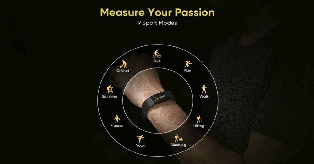 既然都要和小米手環打對臺了,小米手環擁有的功能他也不能缺少。除了擁有小米手環也配有的睡眠追蹤、心率偵測、計步器這些功能以外,他還擁有九種不同的運動模式:瑜珈、健走、登山、攀岩、騎腳踏車、飛輪、重量訓練還有特地為印度市場設計的板球模式。