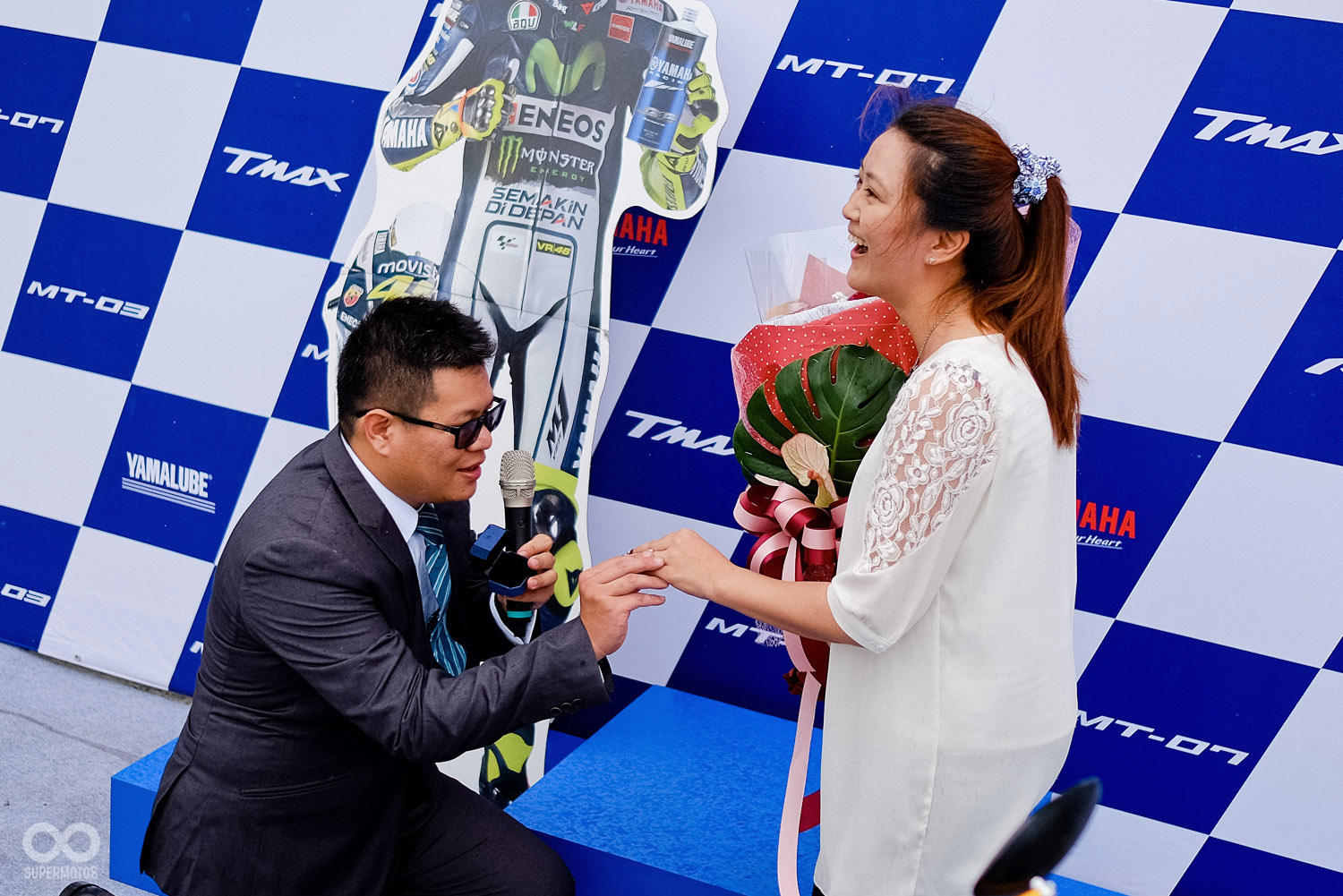 在賽道體驗結束後,YAMAHA設置了趣味頒獎台,讓騎士可以和Rossi立牌與獎杯進行合影留念,而當天更有車友藉由此盛會,給一同前來的女友驚喜,上演了求婚橋段,讓現場充滿歡樂溫馨的氣氛。