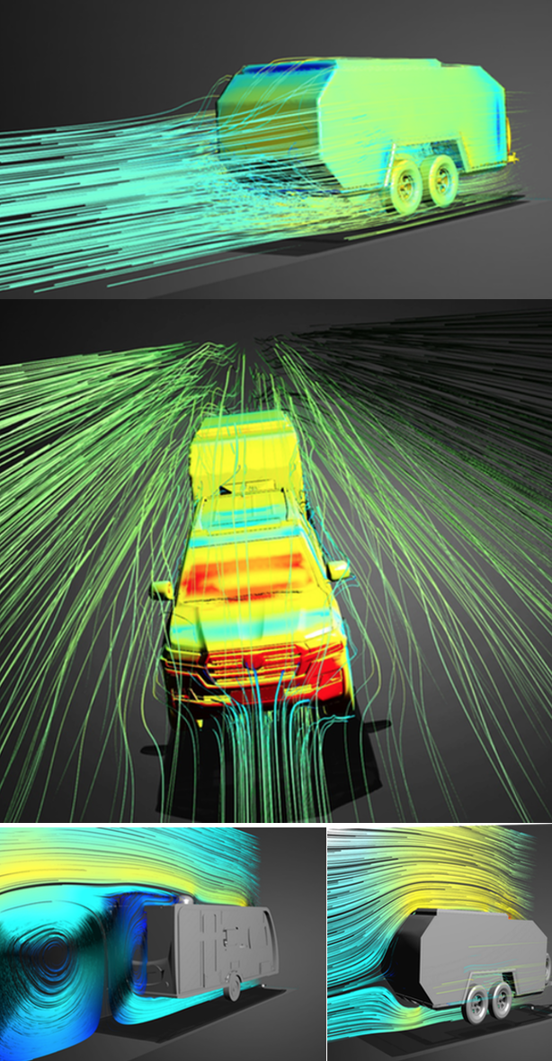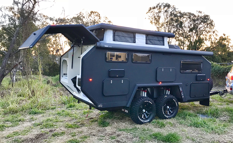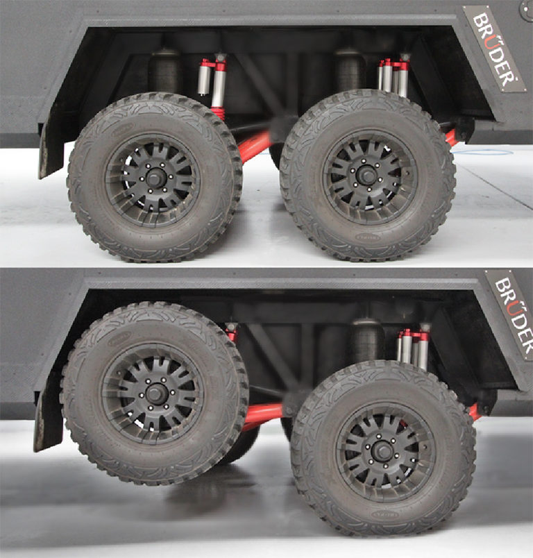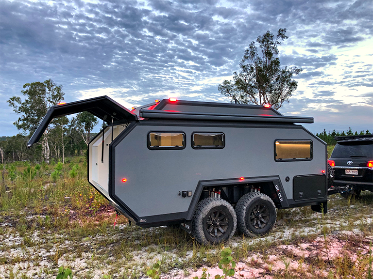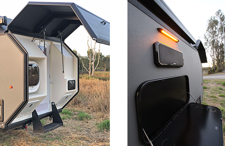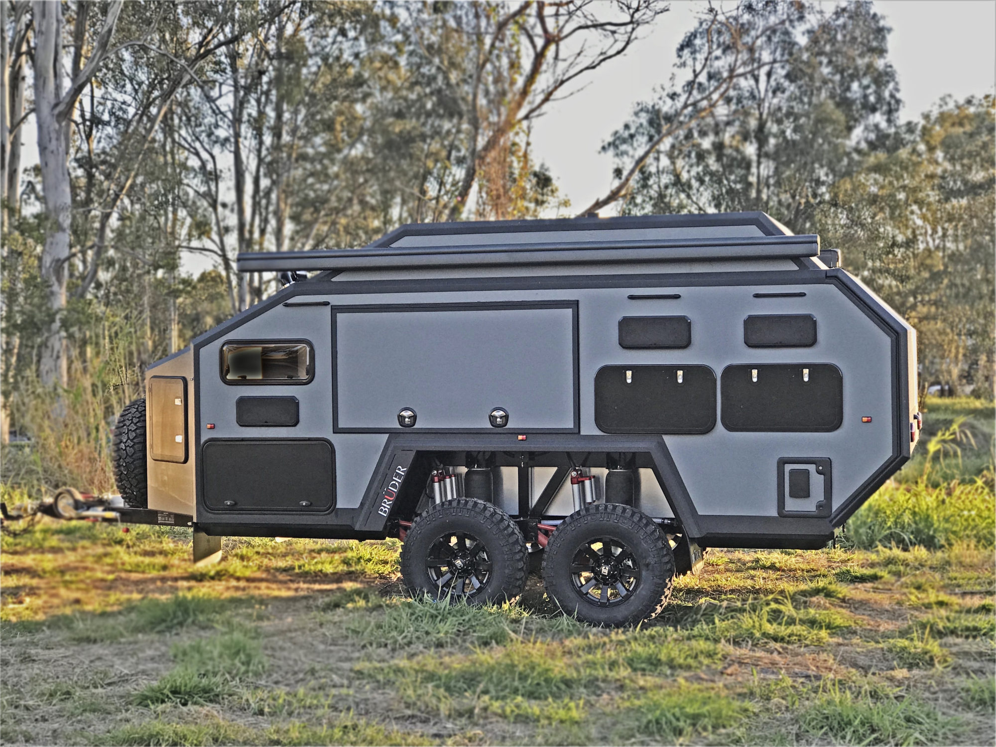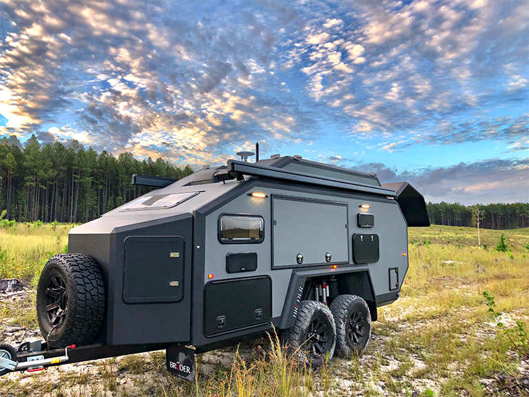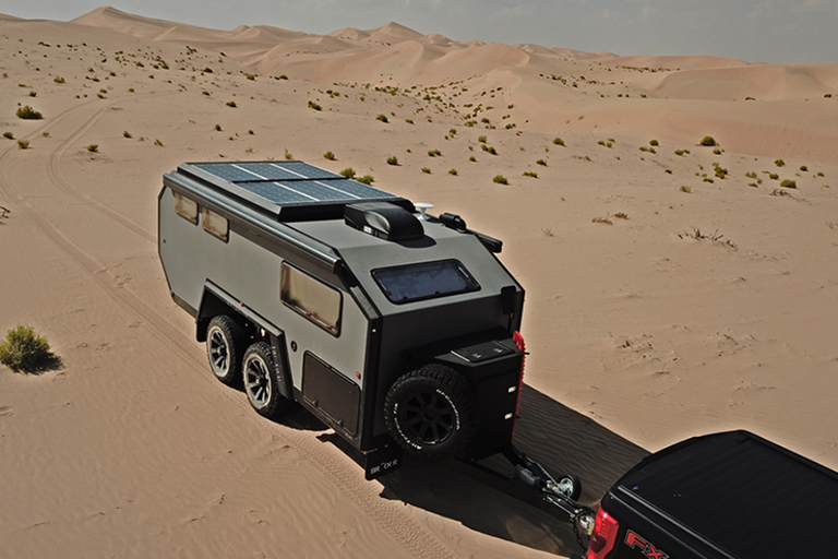 像是他們最強悍的EXP-6,在四個輪子上都配備了獨立的氣壓懸吊系統,意味著這輛拖車可以針對通過地形做出最適當的調整,加上採用了特殊材料打造,除了更輕巧之外,也擁有著相當堅固的車體強度,並且擁有氣密處理,水或著是砂石不會在行駛時進入車內,讓車主可以放心內部空間不會變成一場災難。